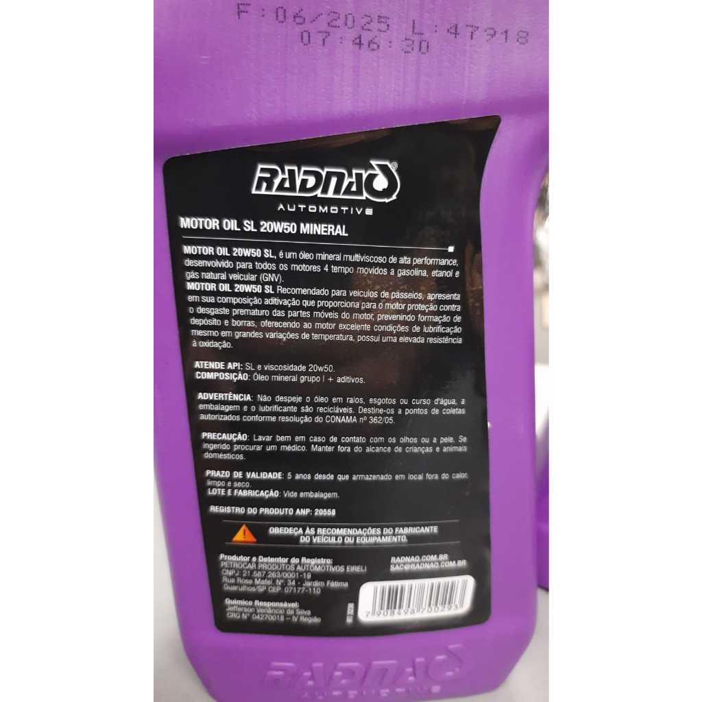 Óleo 20w50 Mineral para carro Radnaq 4 litros
