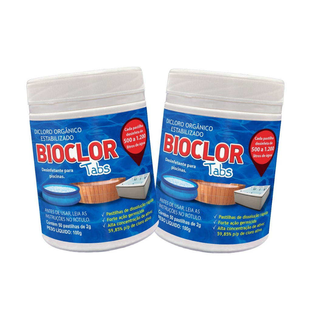 Pastilhas de Cloro 2g p/ Piscinas Plásticas – Bioclor Tabs