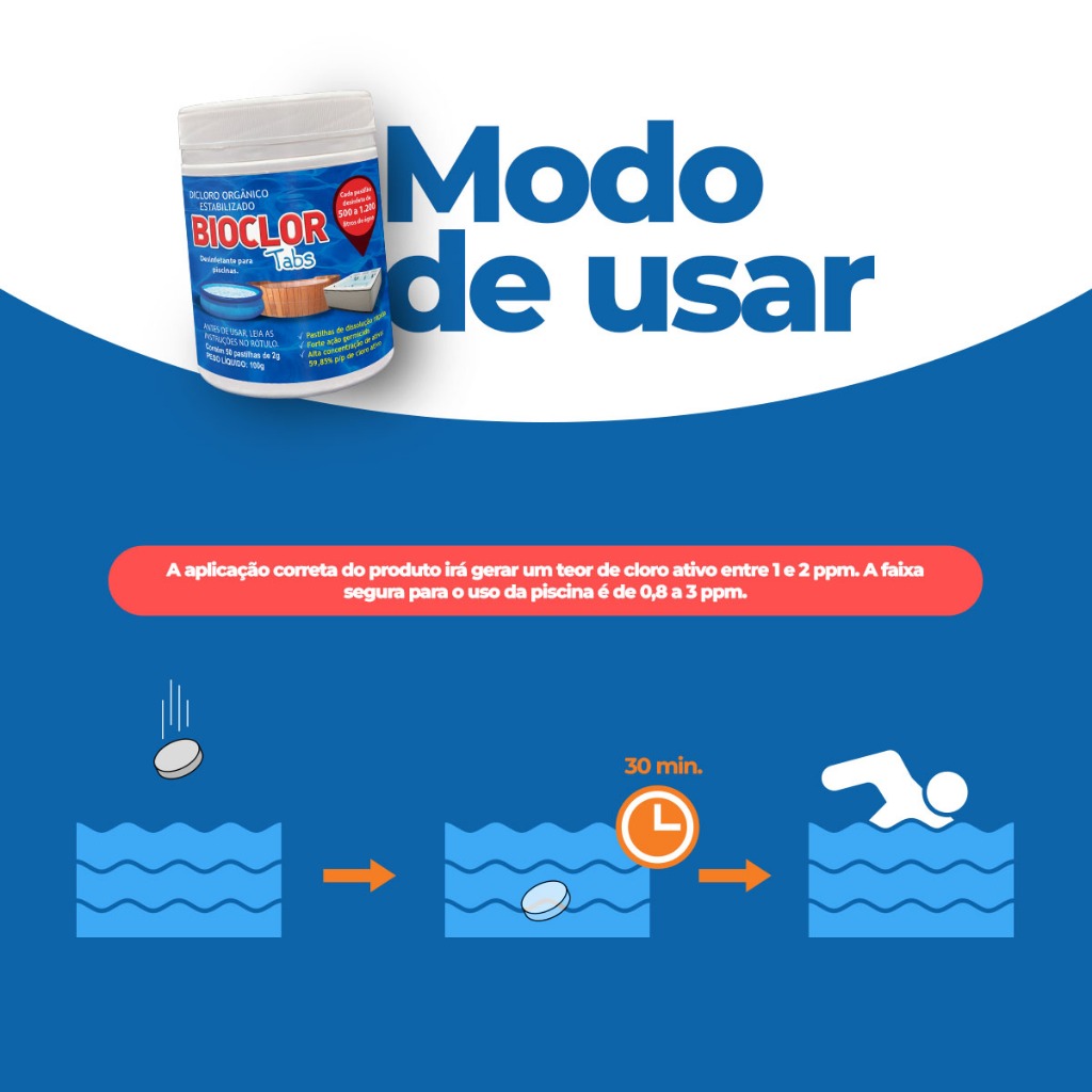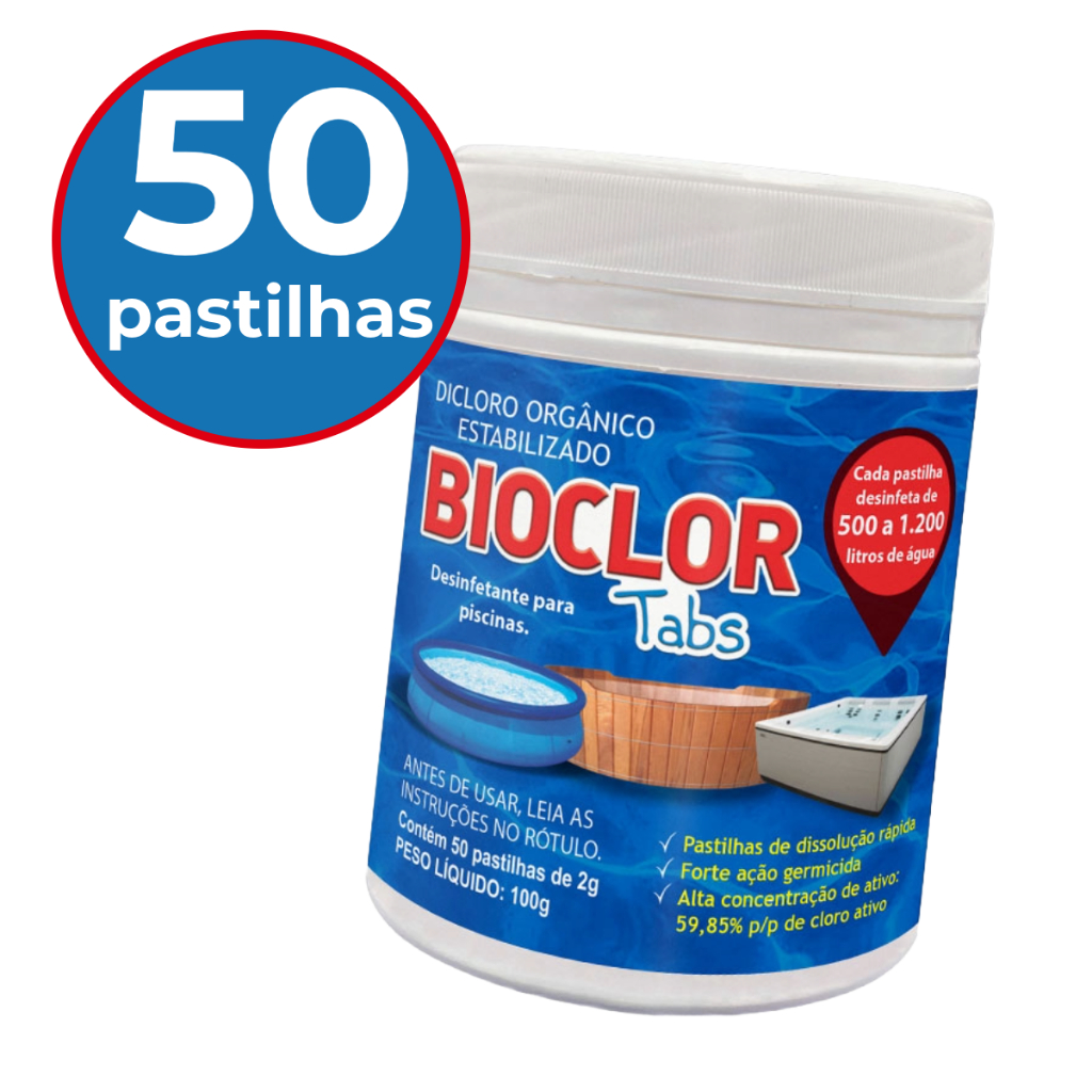 Cloro p/ Limpeza e Manutenção de Piscinas c/ 50 un - Bioclor Tabs