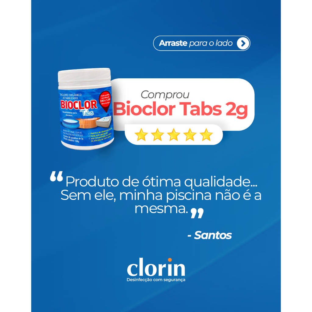 Pastilha de Cloro Bioclor Tabs 2g Piscina 50 Un