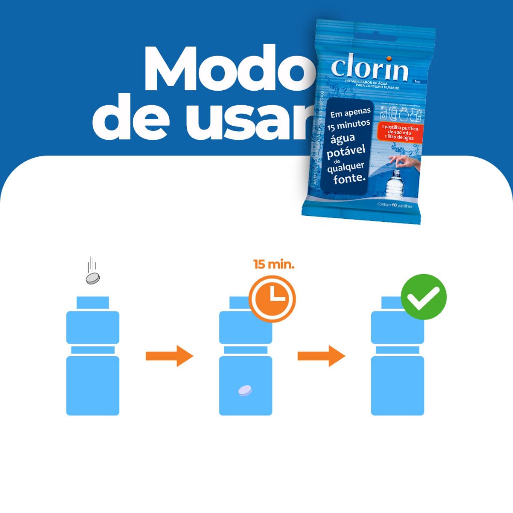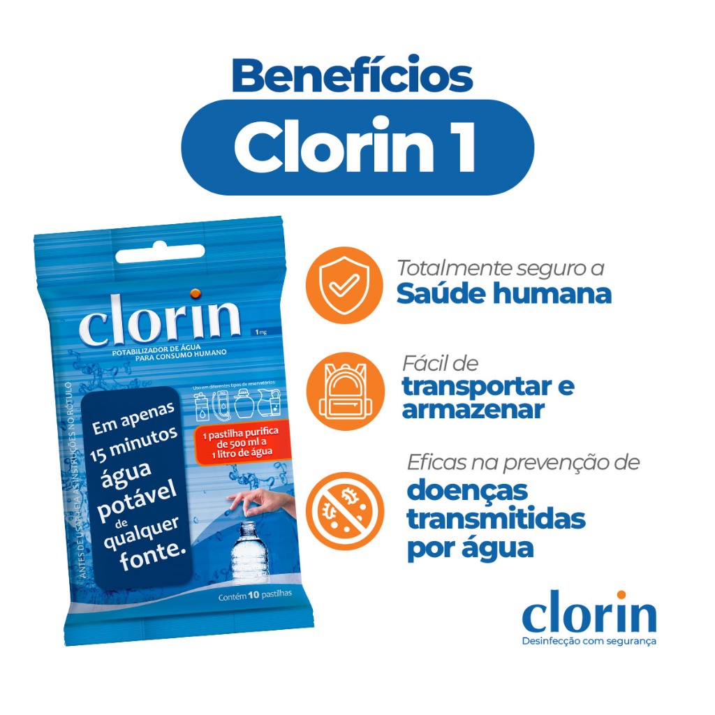 40 Pastilhas Clorin 1 – Purificador para Água Não Tratada
