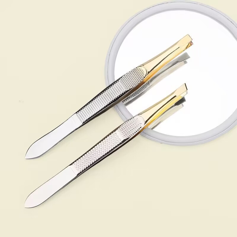 Kit 12 Aço Inoxidável Banhado A Ouro Pinça Sobrancelha