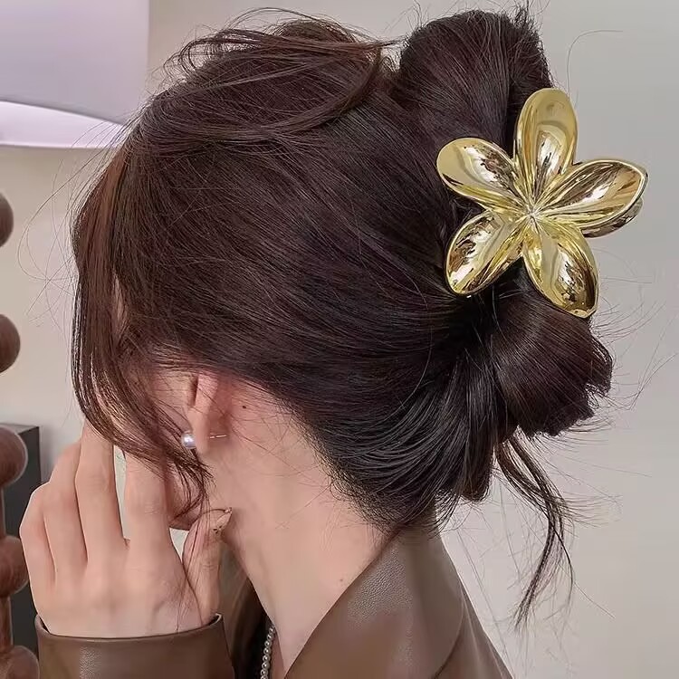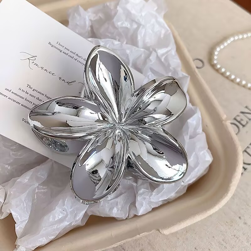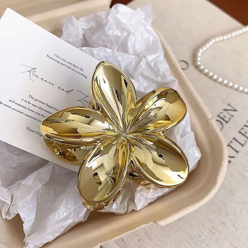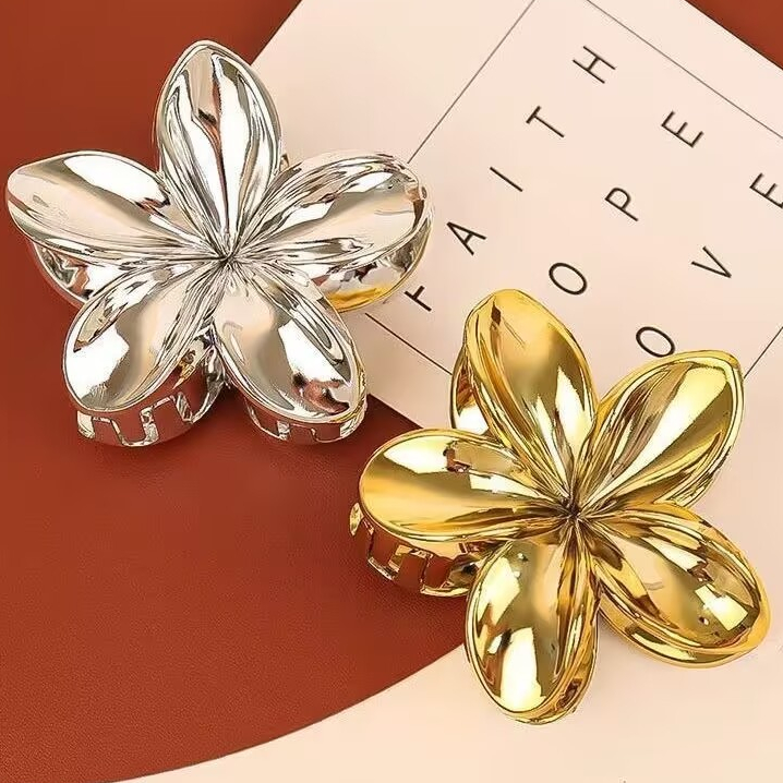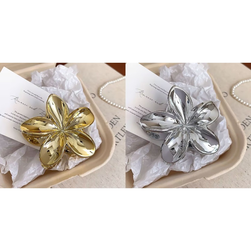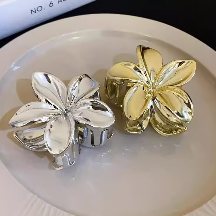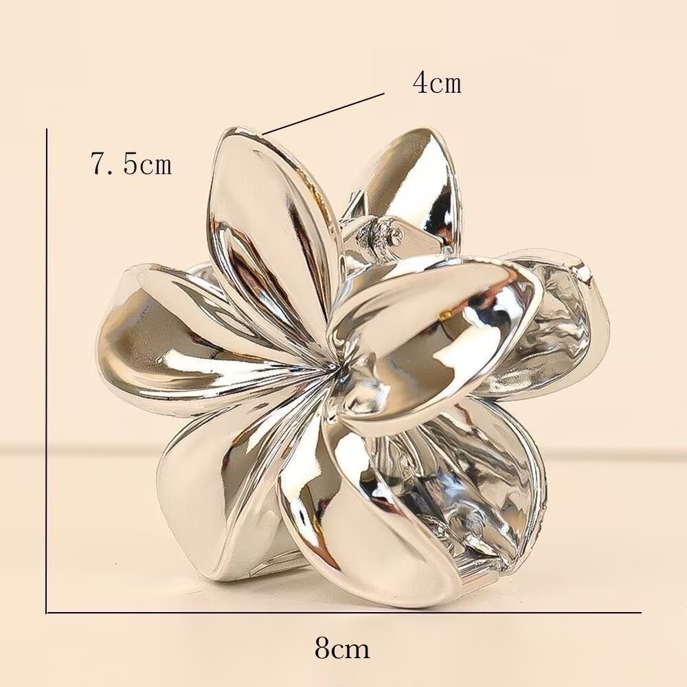 Presilhas De Cabelo Flor Prata/Dourada Estilo Havaiano Piranha Grampo De Garra de Cabelo 8cm