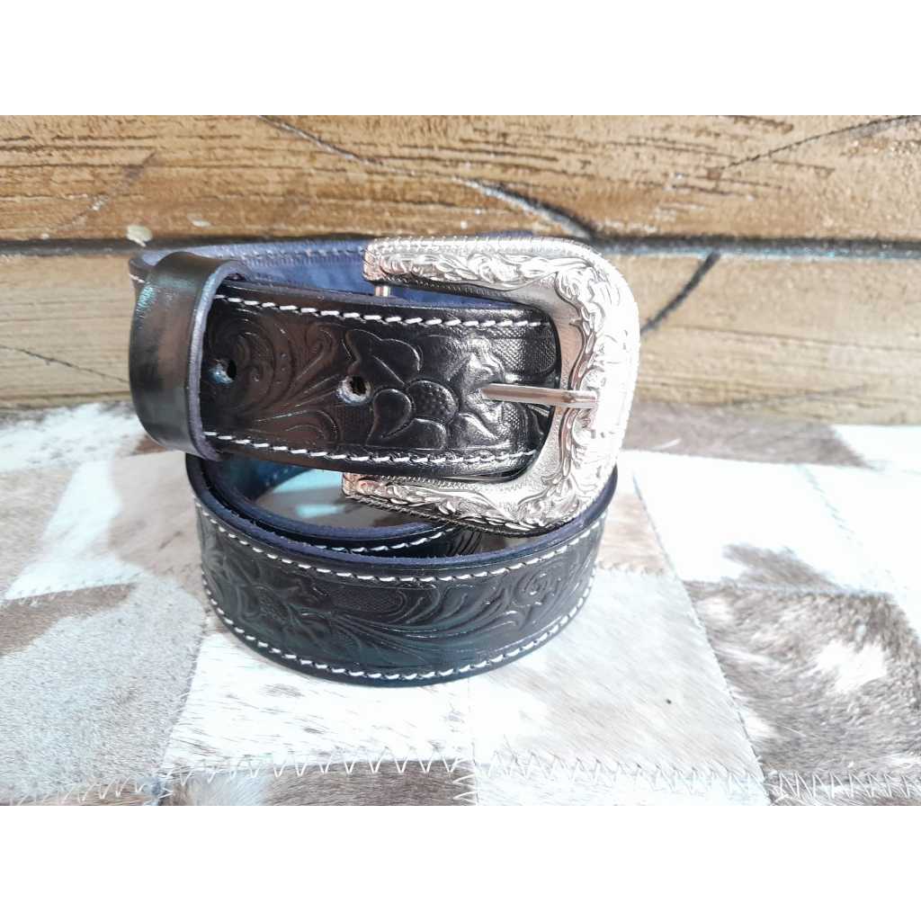 Cinto Country Em Couro Legitimo Rebaixo Floral Cowboy Feminino