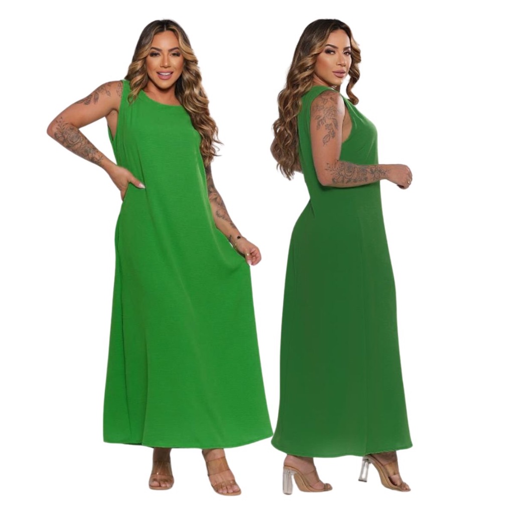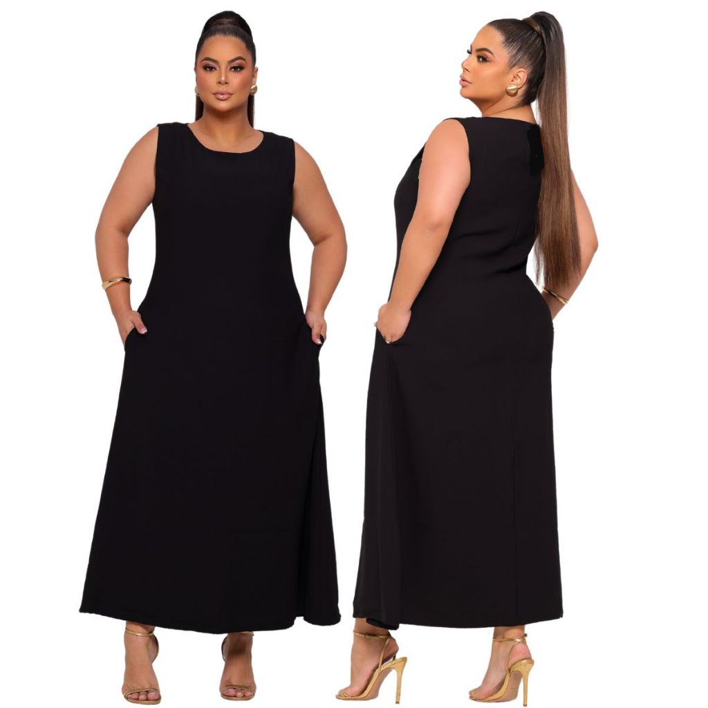 Vestido Longo Tecido Dunas Plus Size Elegante
