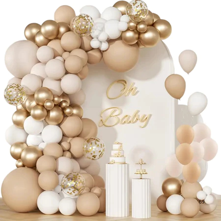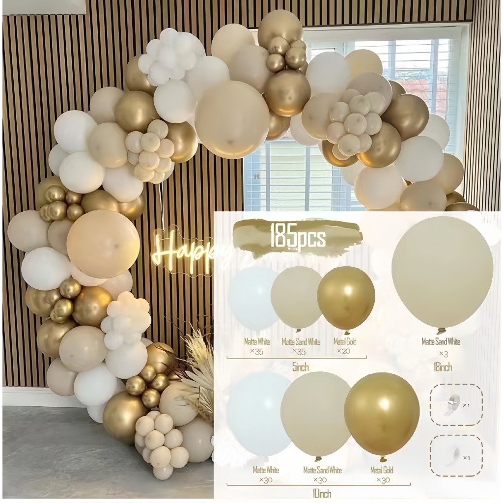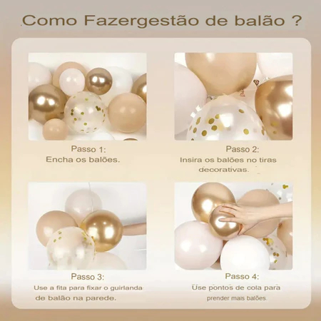 Kit 150 Balões Bege + Branco + Dourado N°5 e 9 Metalizado - Balão Bexiga Liso/Cromado Para Festas
