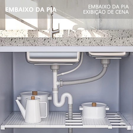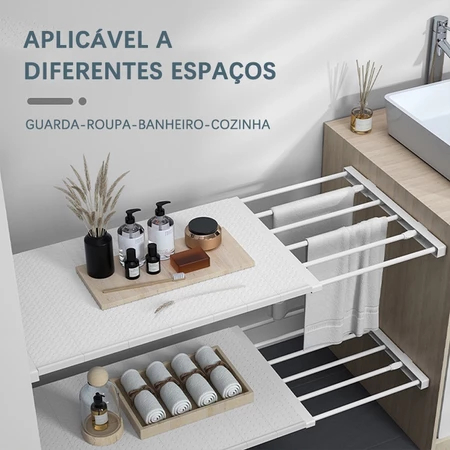 Organizador Prateleira Inteligente Retrátil portátil 53 a 90 cm Aço inoxidável Branca Extensível Largura 30cm