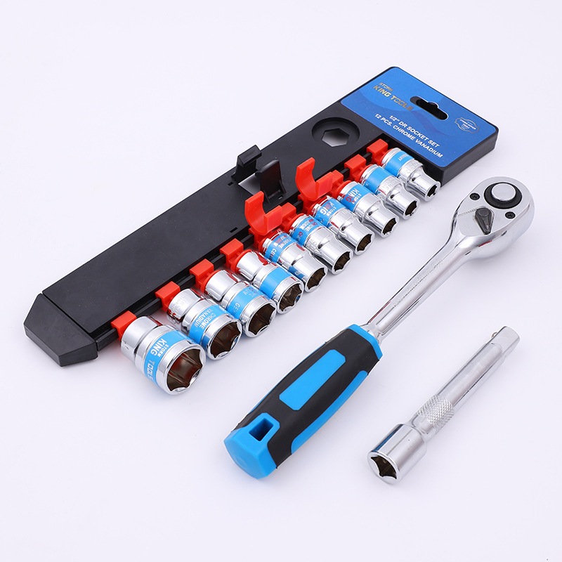 Jogo De Soquete Sextavado 1/2 Catraca 12 Peças 10 a 24mm com Extensão