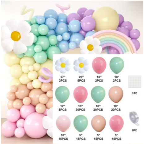 147 Peças Kit De Guirlanda De Balão Margarida Macaron Cor Doce Para Crianças Meninas Decorações De Festa De Ani