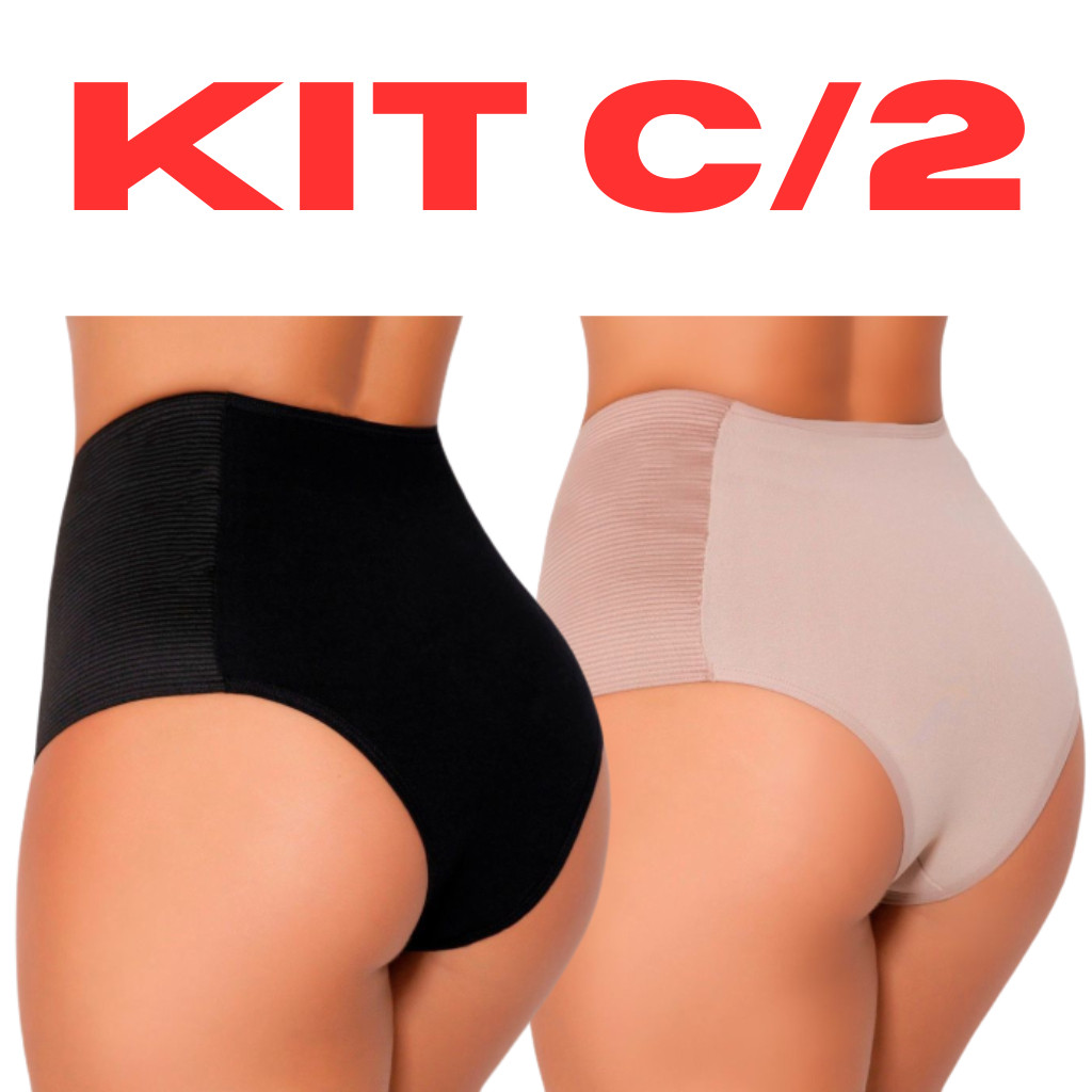 Kit 2 Calcinha Cinta Modeladora Compressão Cós Alto Elastico Redutora Medidas
