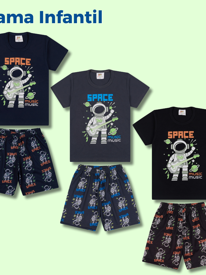 Pijama BRILHA NO ESCURO Infantil Menino Verão Astronauta e Dinossauro