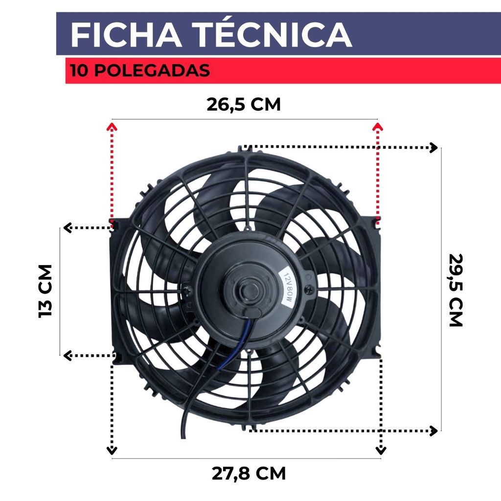 Kit 2 Ventoinha Universal Radiador Condensador 10 Polegadas Pás em S