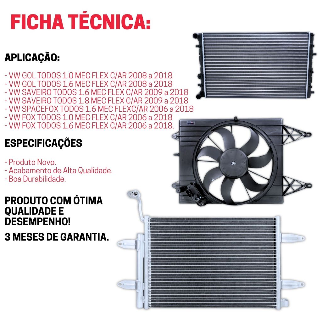 Kit Radiador Eletroventilador Condensador Gol Saveiro Fox SpaceFox G5 G6 G7 G8 2010 2011 2012 2013