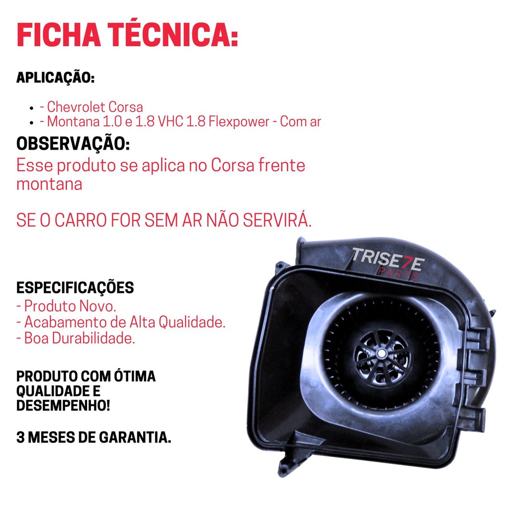Ventilador Interno do GM Corsa Montana 1.0 1.8 Com Ar 2002 2003 2004 2005 2006 2007 2008 2009 2010