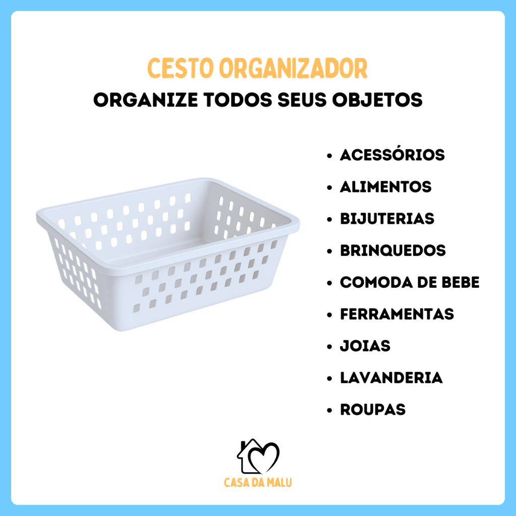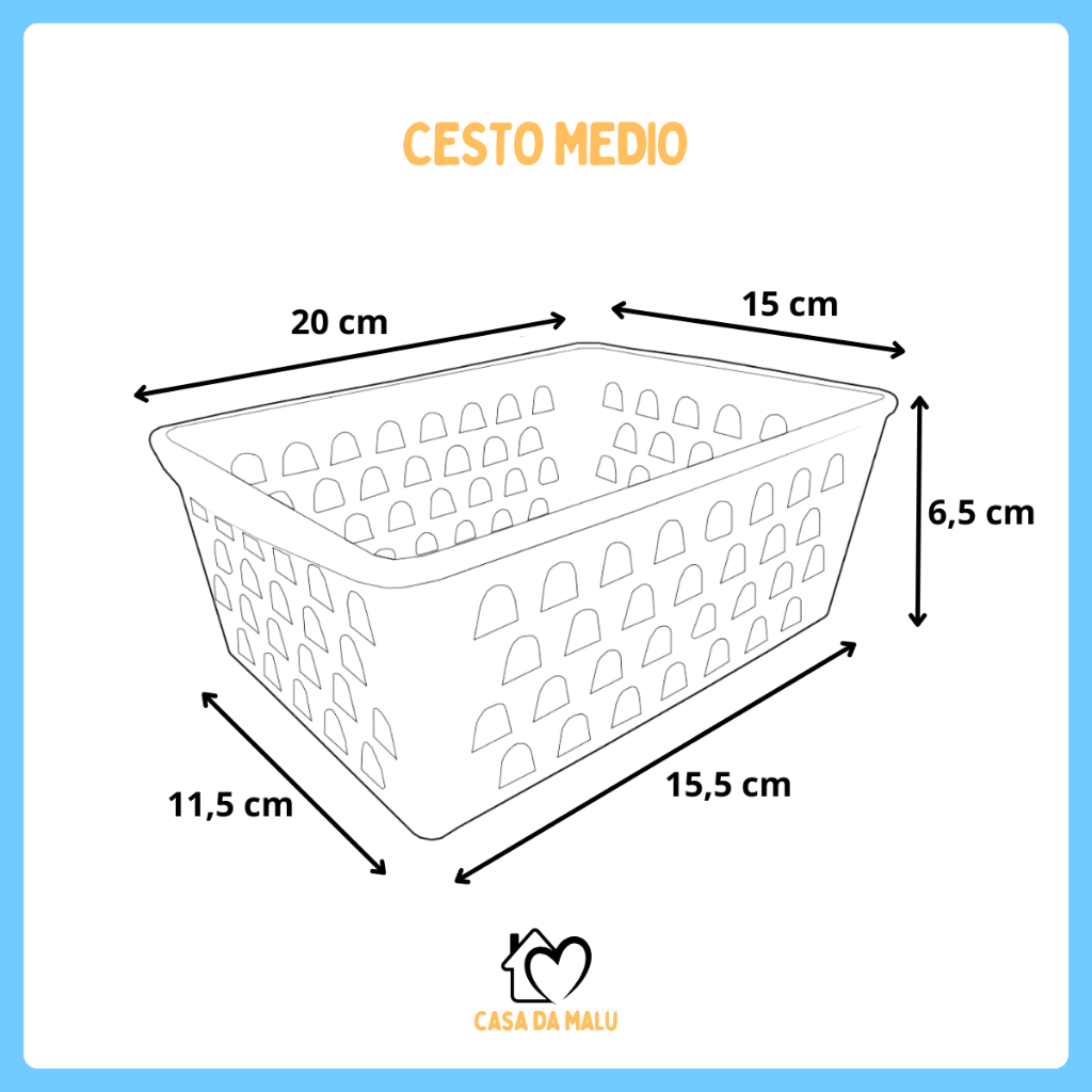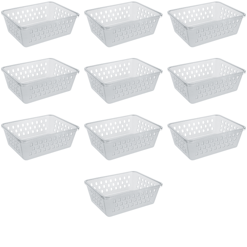 Kit ate 10 Cesto Organizador Medio 20x15x6cm Branco Transparente Rosa Azul Preto