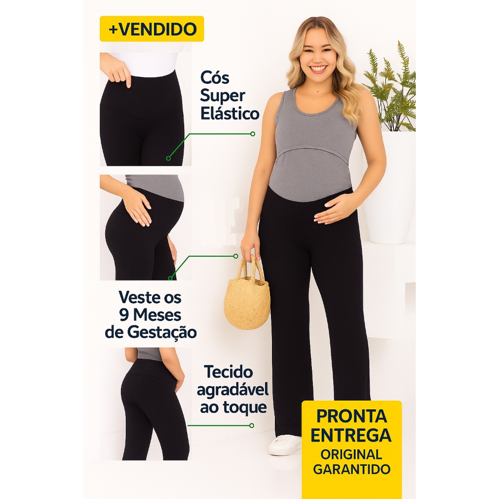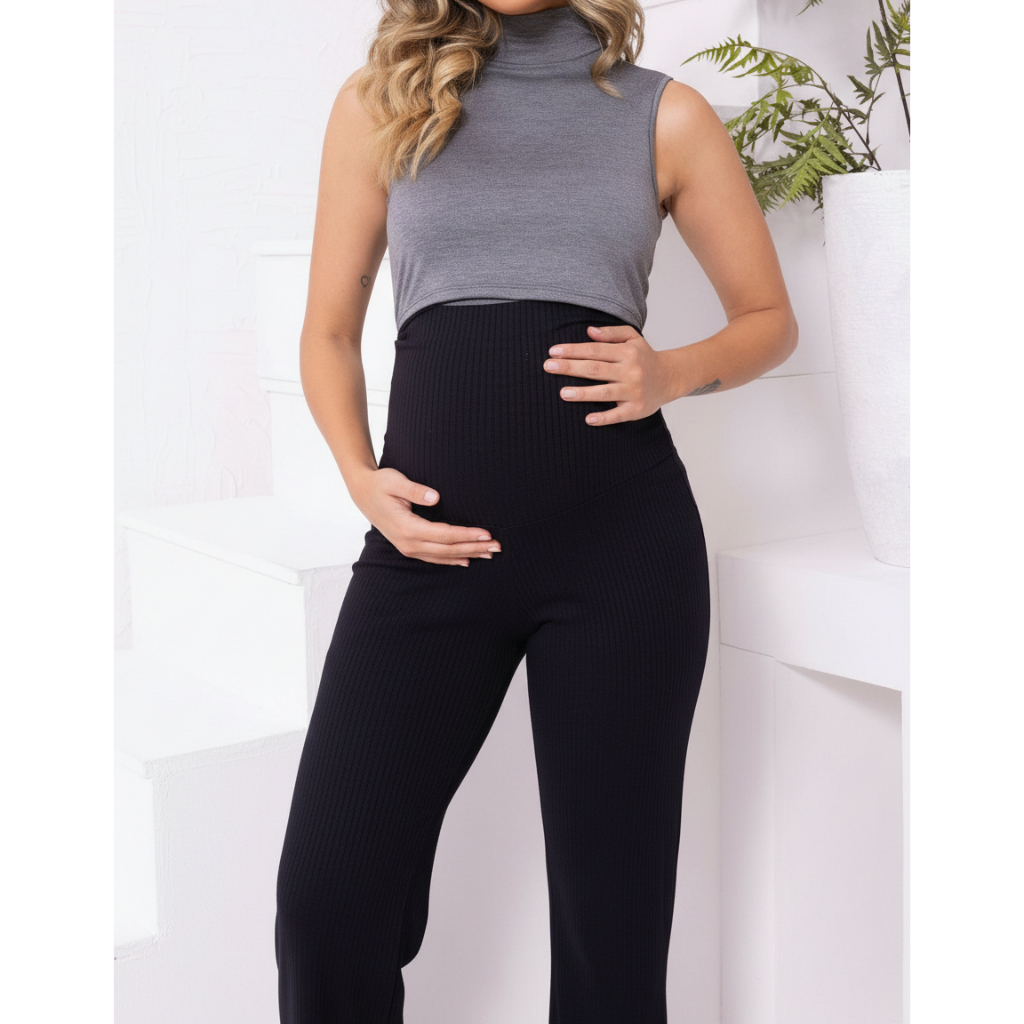 Calça Gestante Maternidade Pantalona Alto Conforto