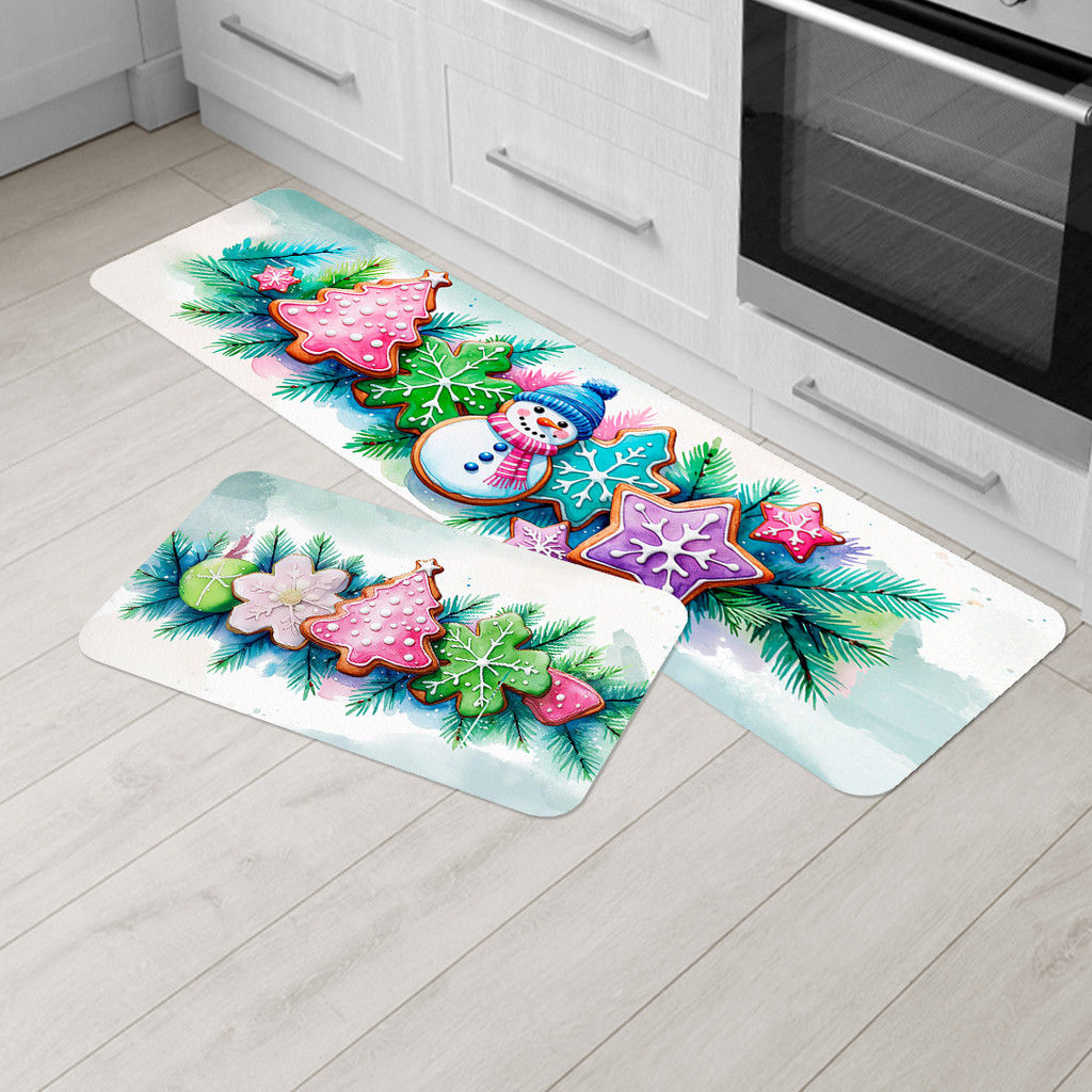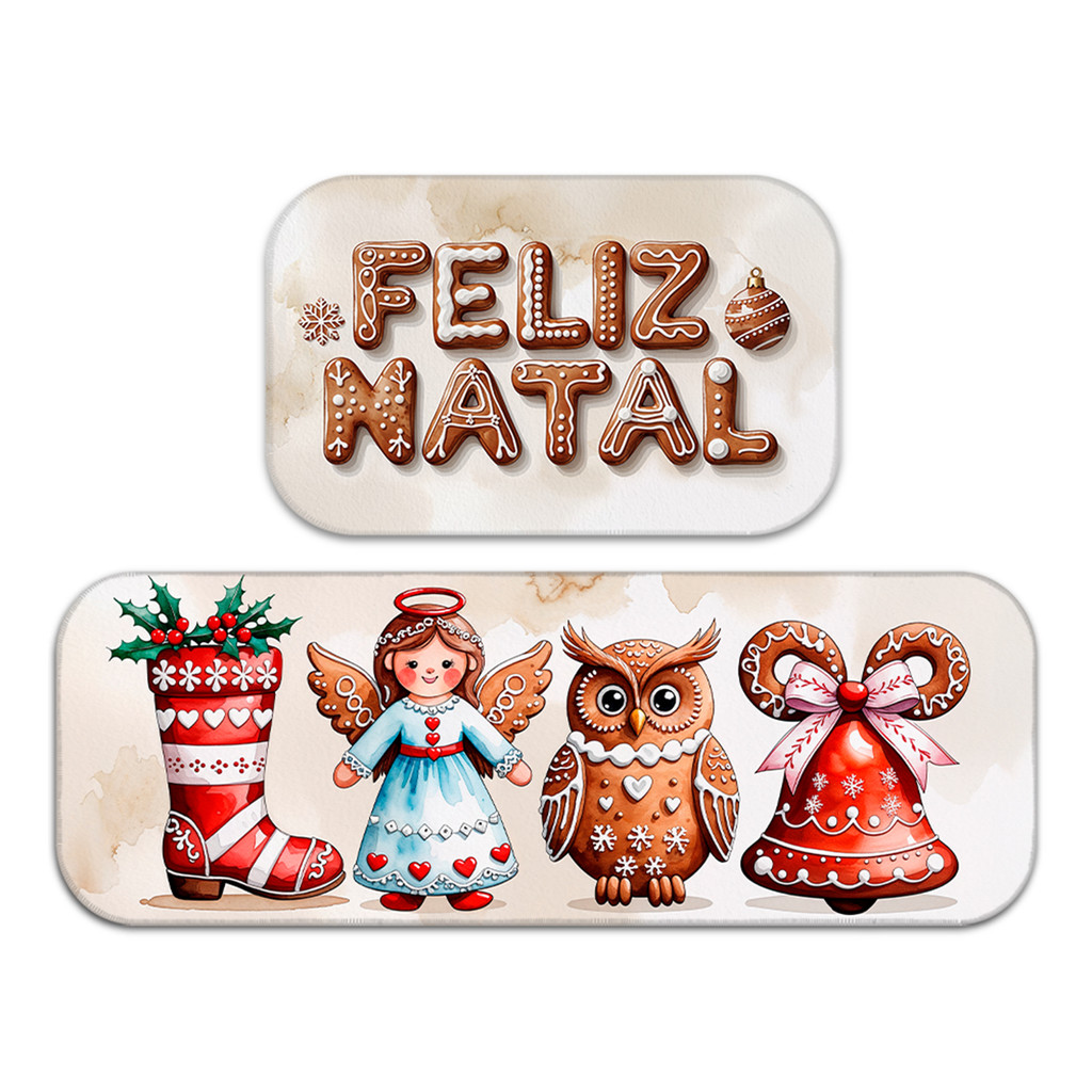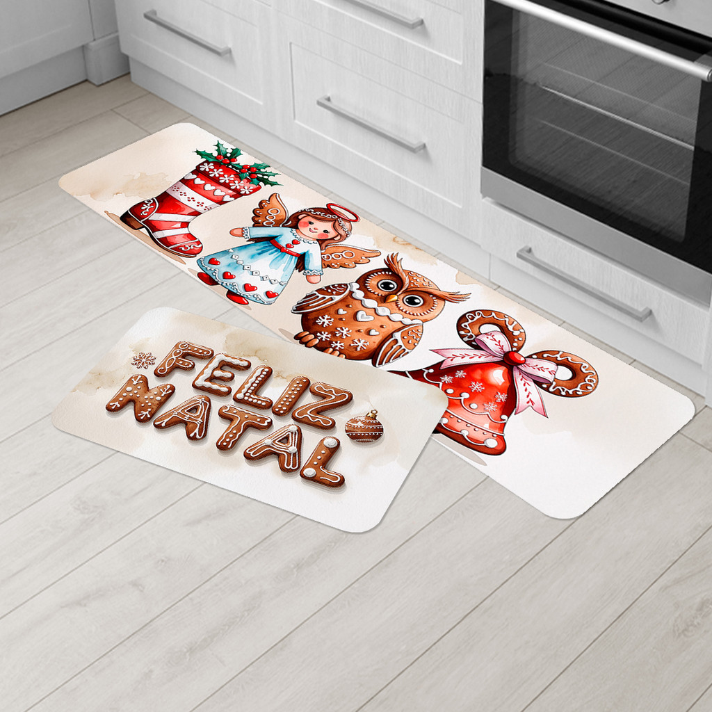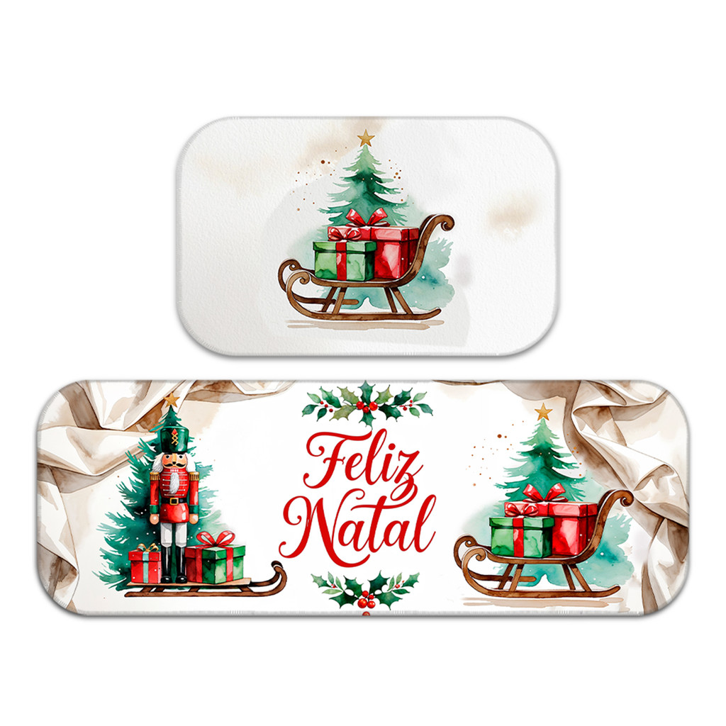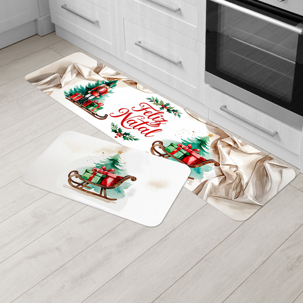 Kit Tapete de Natal para Cozinha 2 Peças – Emborrachado Premium, Antiderrapante e Decorativo