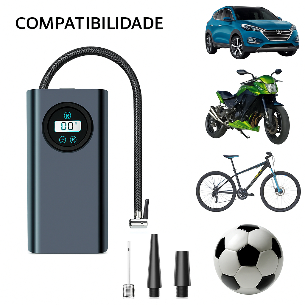 Bomba de Encher Pneu Portátil Digital Calibrador Compressor Carro Moto Bike Bola Piscina Inflável - Oferta