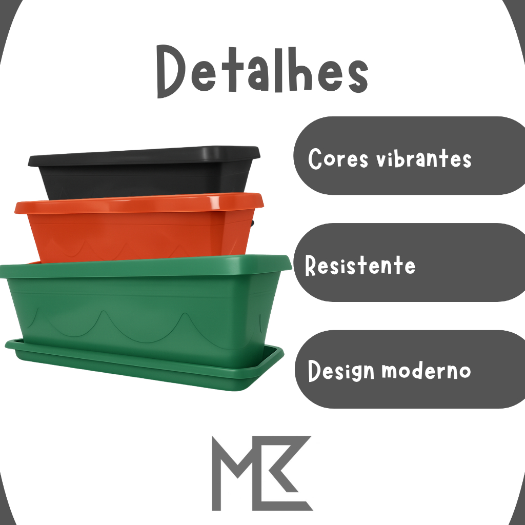 Floreira/Vaso 7L 35cm Prato Grande Horta/Jardim Retangular Plástico Preto/Verde/Terracota