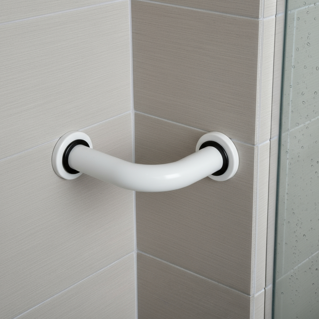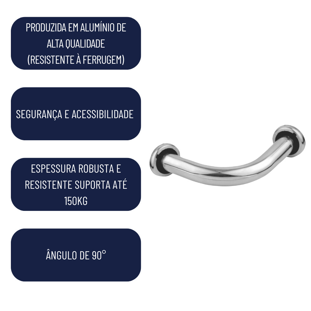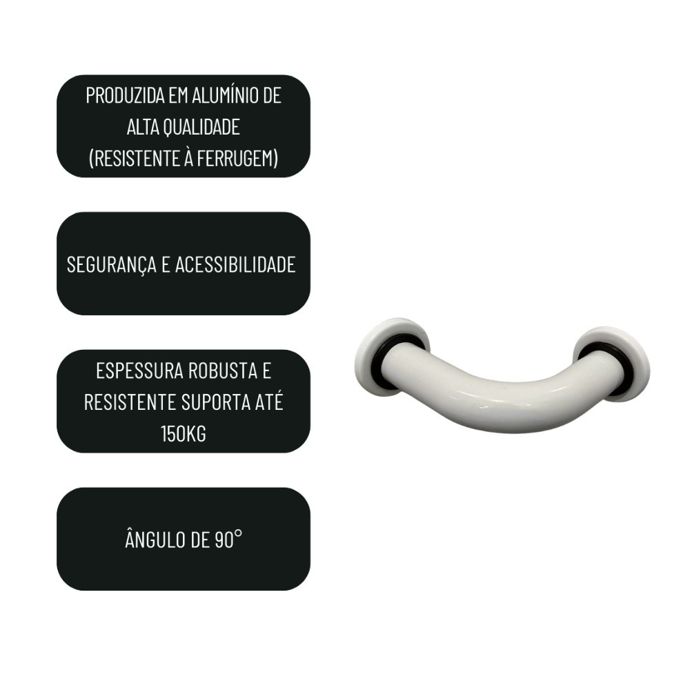 Barra de Apoio Canto 90° Banheiro Lavar Pés Depilar Alça Alumínio Segurança Cromado Preto ou Branco