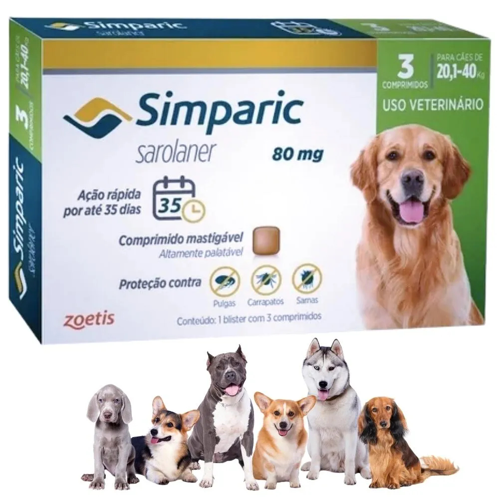 Antipulgas Simparic 80mg para Cachorros de 20 a 40kg com 1 comprimido