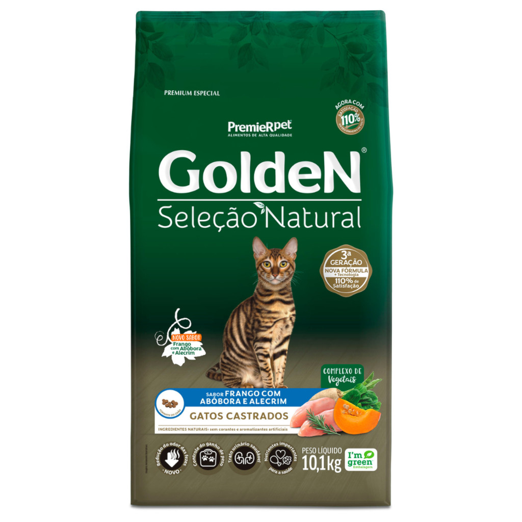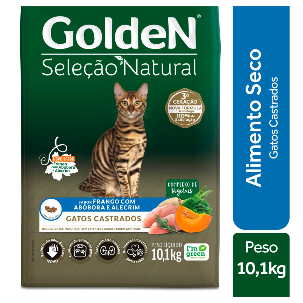 Ração GoldeN Seleção Natural gatos adultos castrados frango, abóbora e alecrim 10,1kg