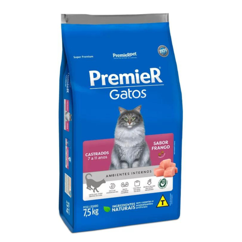 Ração PremieR Ambientes Internos Gatos Castrados 7 a 11 anos Frango 7,5 kg