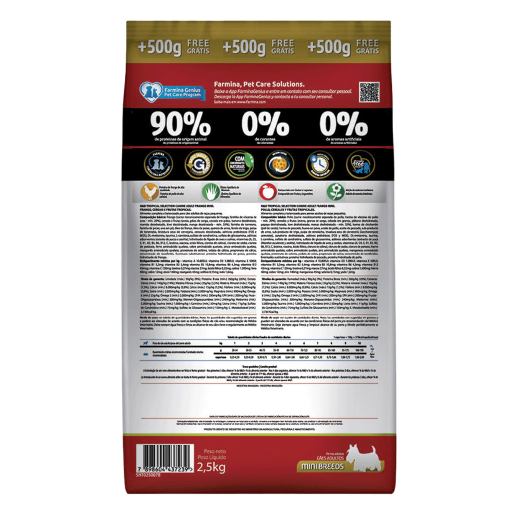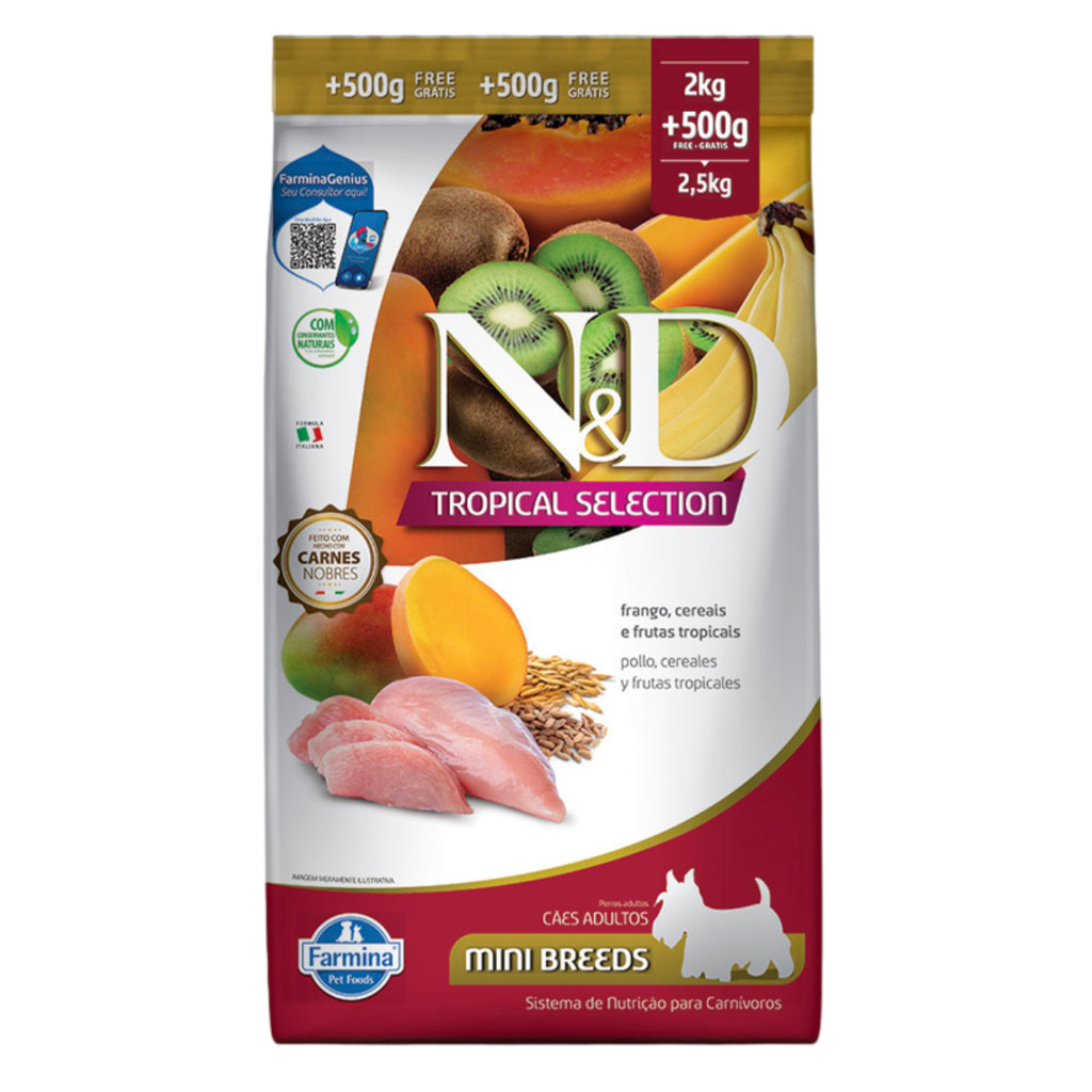 Ração N&D Tropical Selection Cães Adultos 2kg + 500g Grátis Porte Mini e Pequeno Sabor Frango, Cereais e Frutas Tropicai