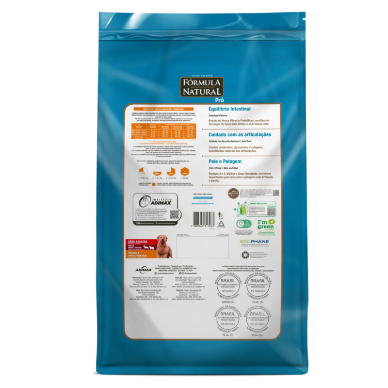 Ração Fórmula Natural Pró Cães Adultos 15 kg Porte Médio E Grande Sabor Frango E Arroz Integral