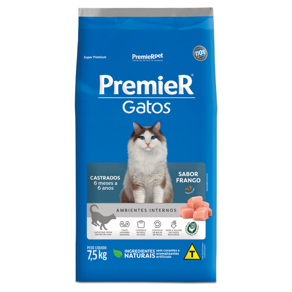 Ração PremieR Ambientes Internos Gatos Castrados para Gatos de 6 meses até 6 Anos Frango 7,5kg
