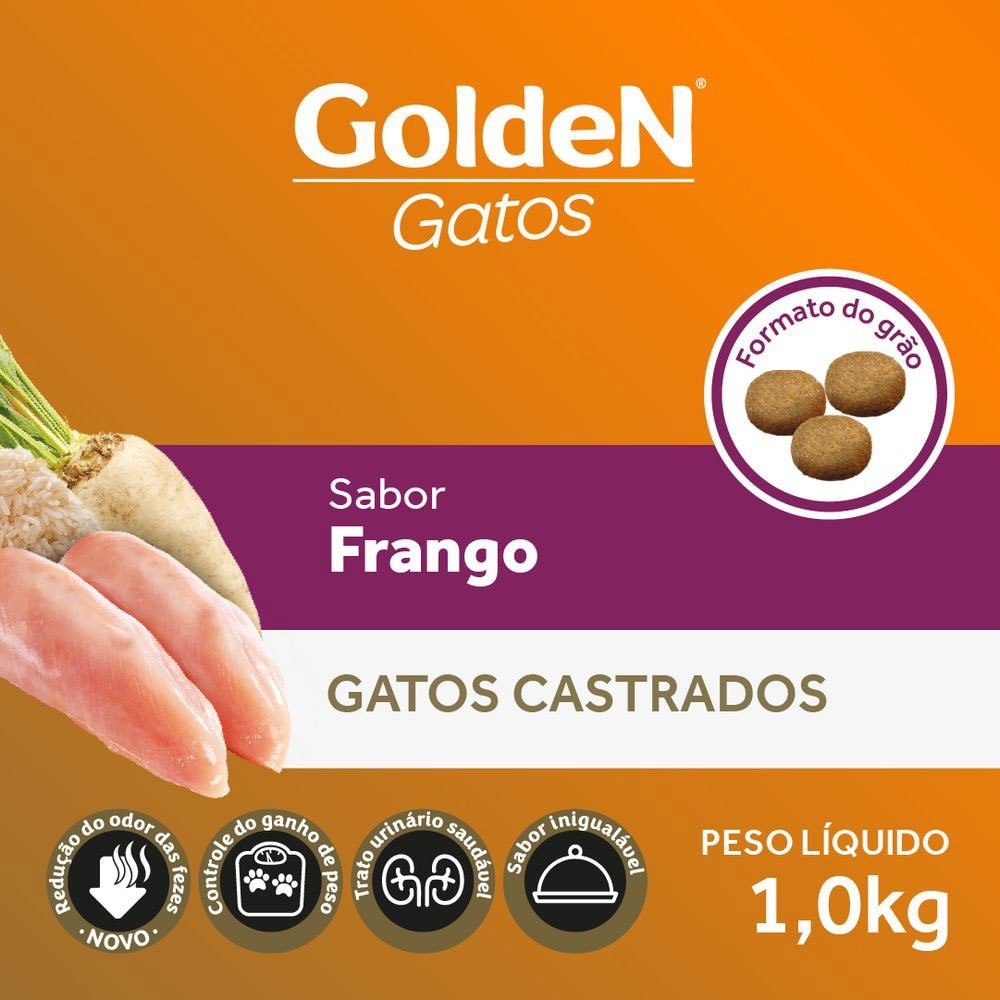 Ração GoldeN Formula Gatos Adultos Castrados Frango 1 kg