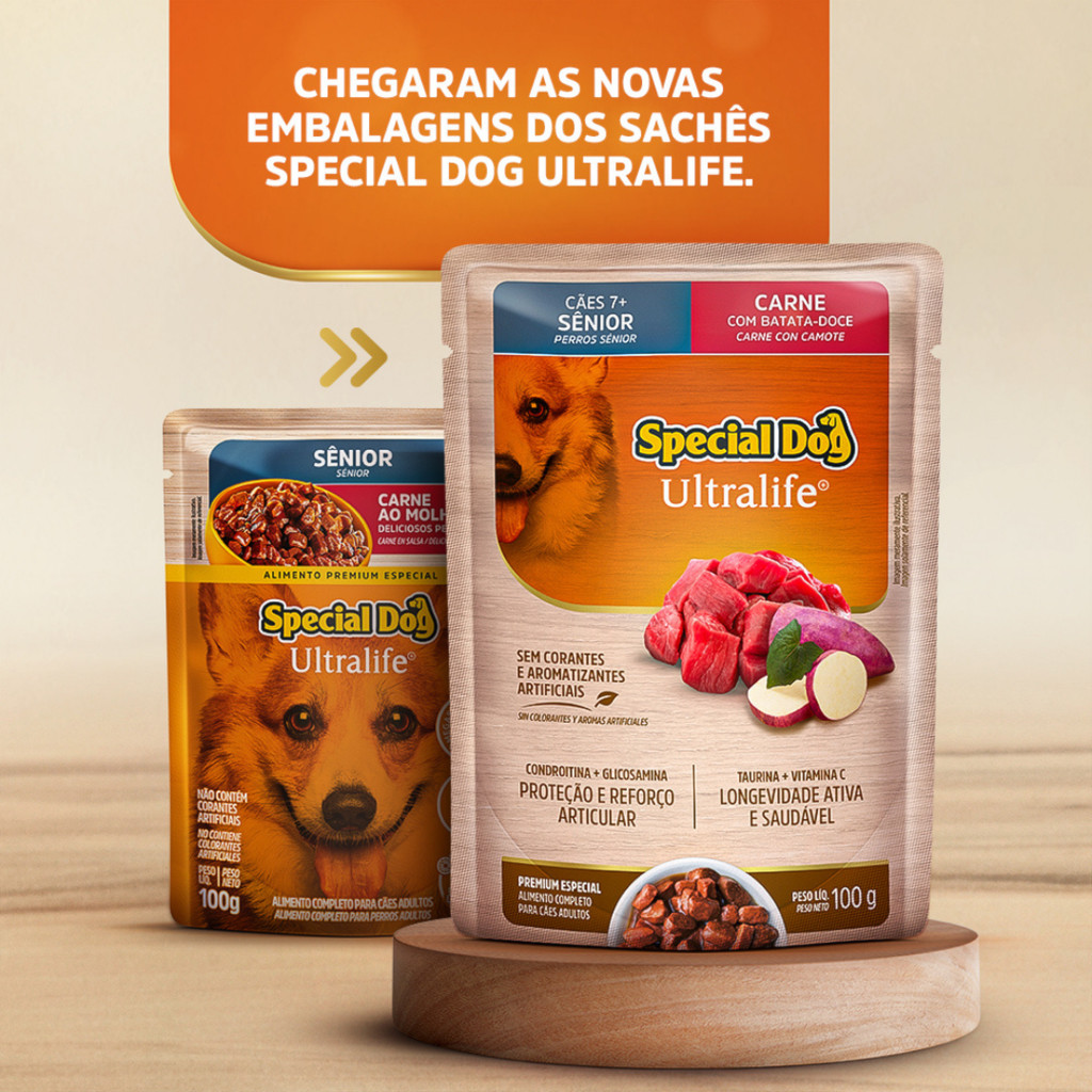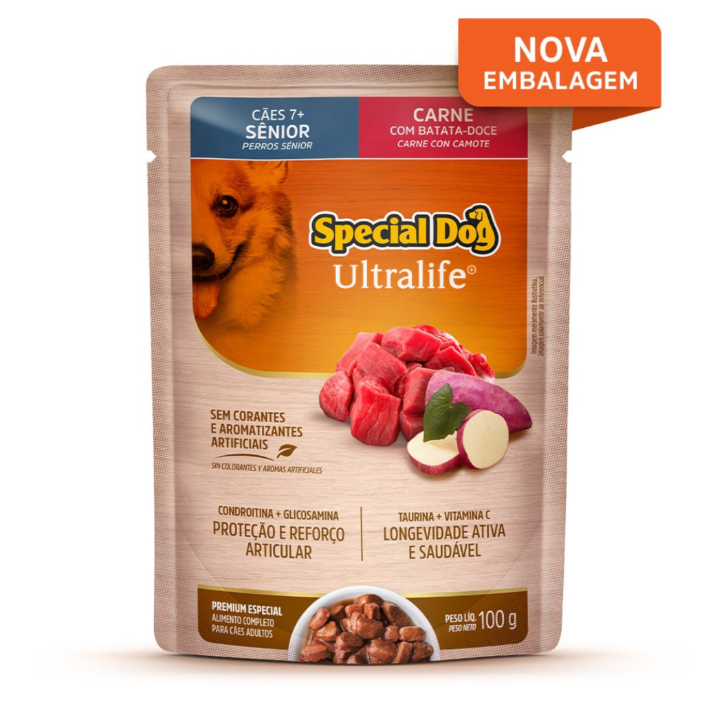 Kit com 12 Sachês Special Dog Senior para Cães sabor Carne com Batata-Doce 12x100g