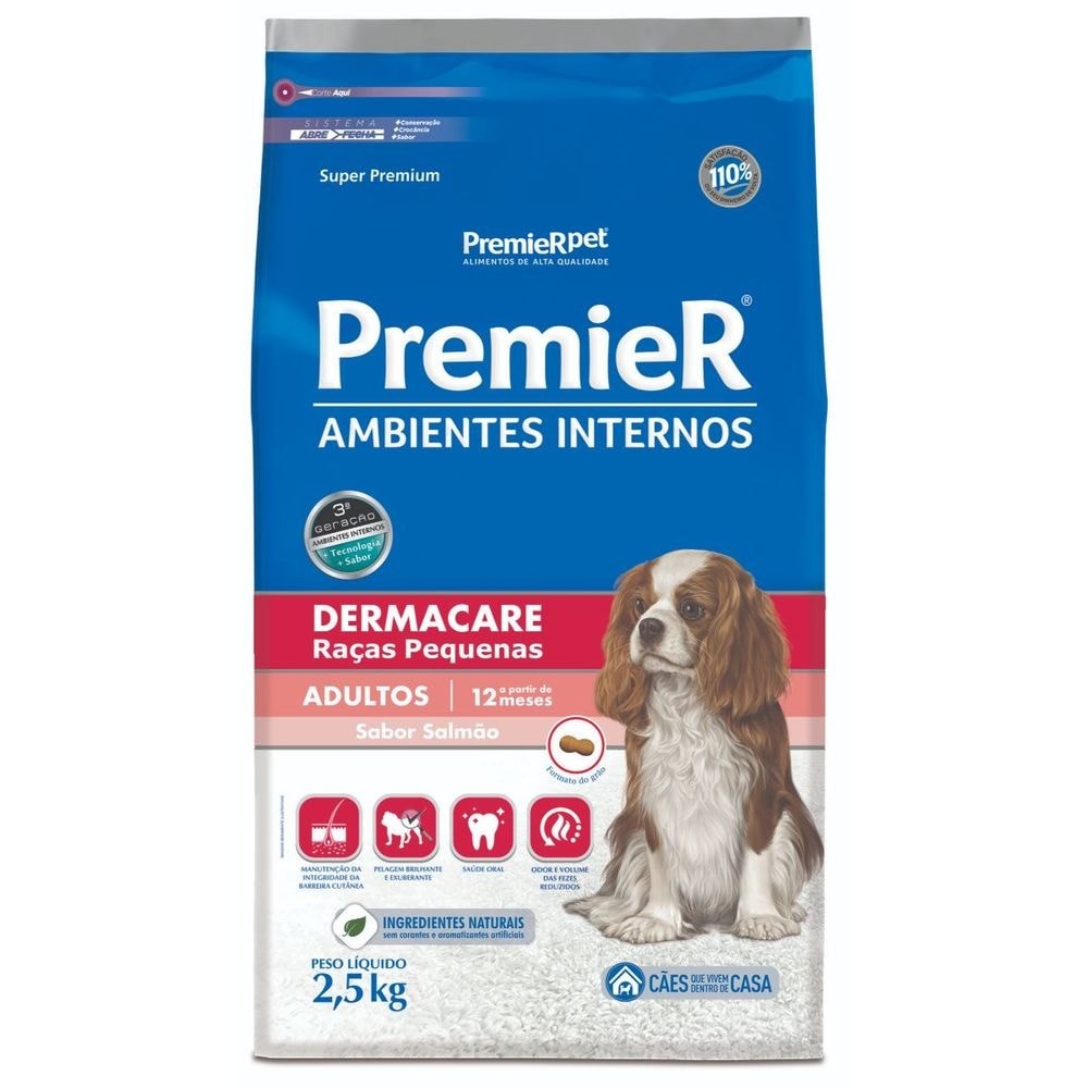 Ração PremieR Ambientes Internos dermacare raças pequenas para cachorros adultos salmão 2,5kg