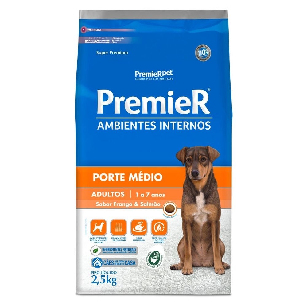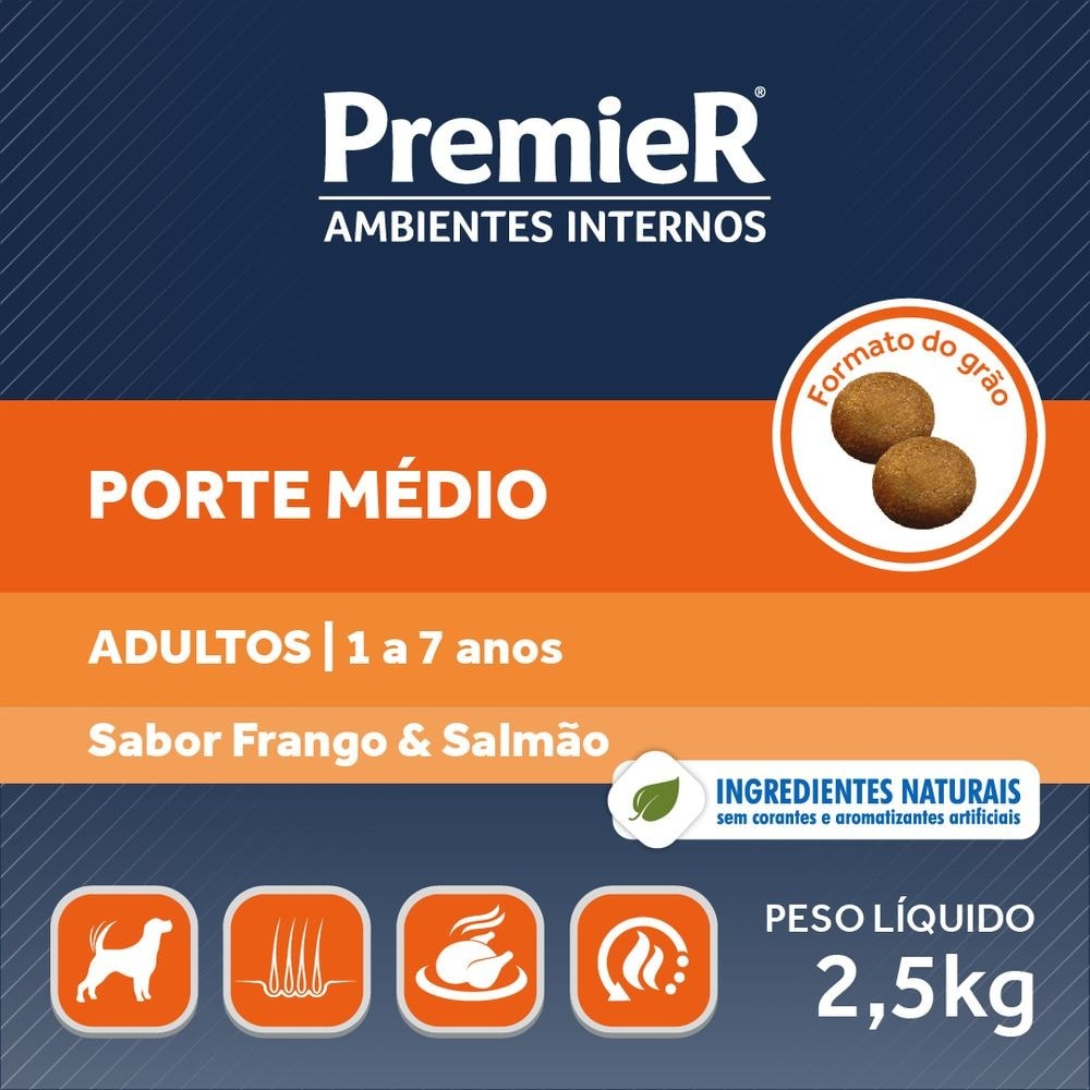 Ração PremieR Ambientes Internos porte médio para cachorros adultos frango & salmão 2,5kg