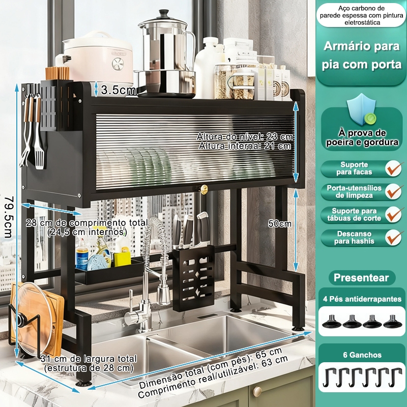 haosin Escorredor De Pratos Modular Suspenso Organizador Prateleira Dupla De Asfalto 65cm