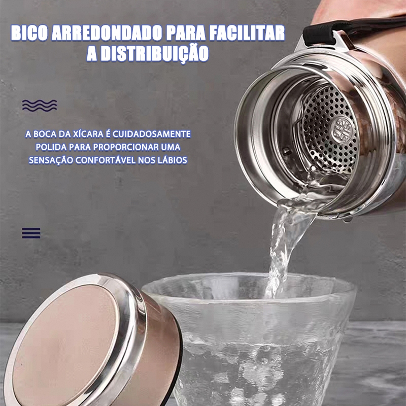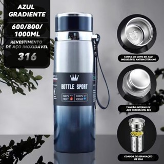 Garrafa Térmica de Água 800ml ou 1000ml Inox Com Infusor Prata Dourada Azul Parede Dupla Com Alça