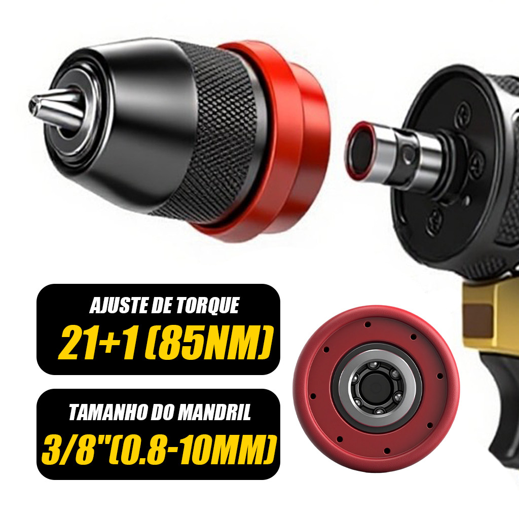 Furadeira Parafusadeira 2 bateria 16.8 volts 3/8" 10mm 2200rpm brushless