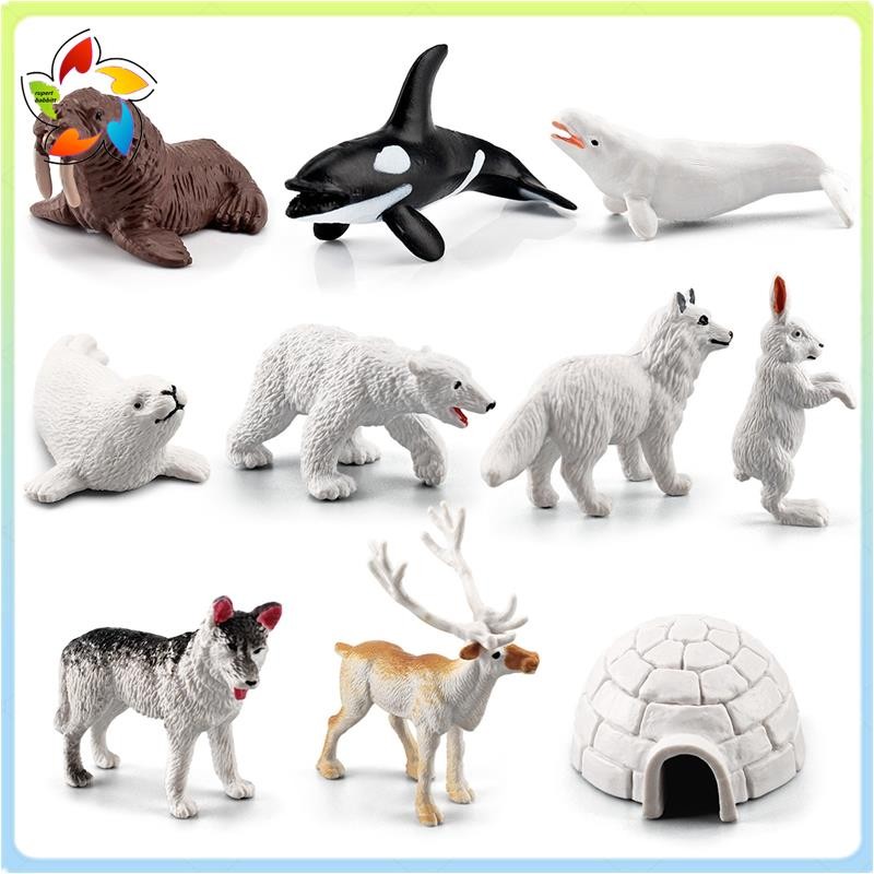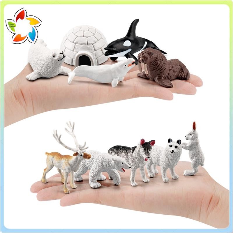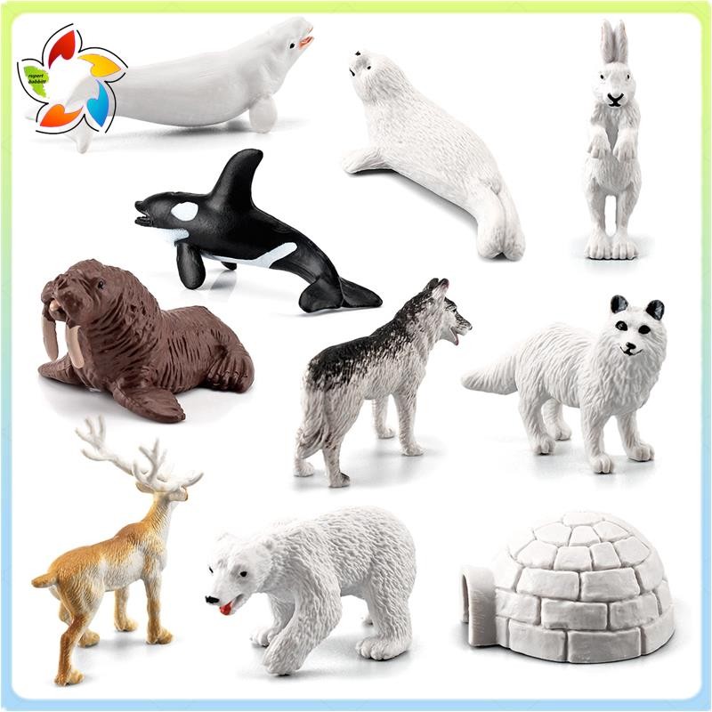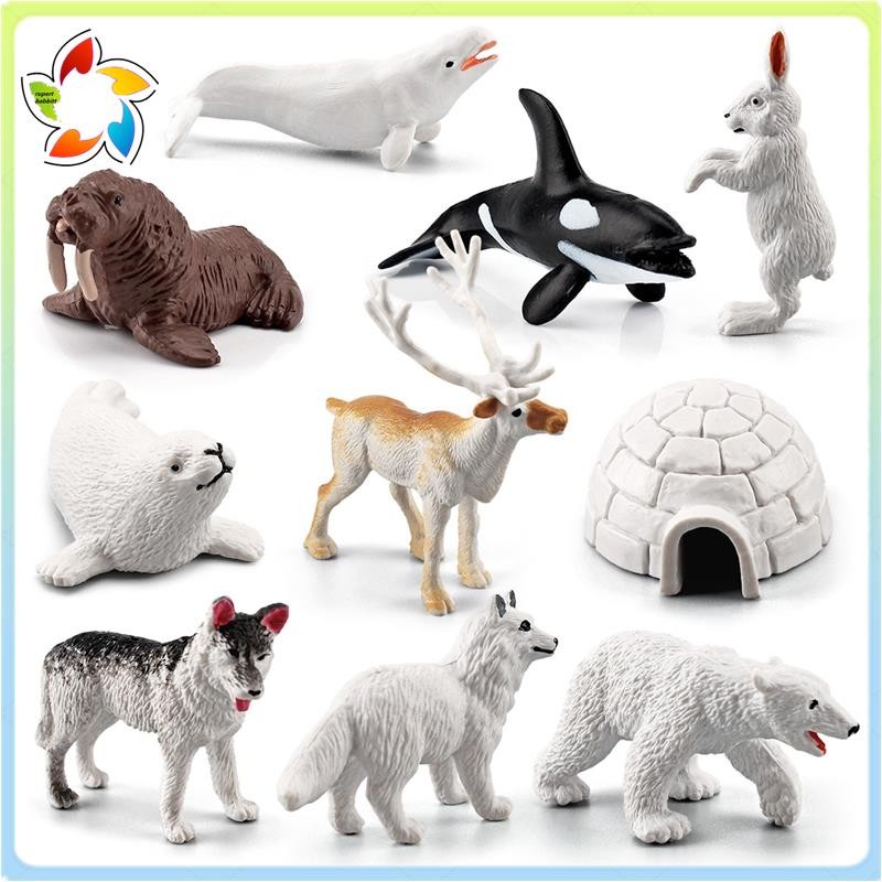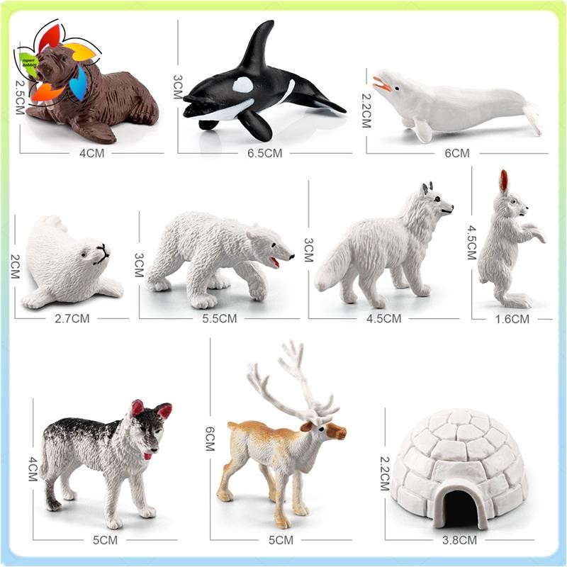 10 Pçs Mini Simulação Urso Coelho Selos Polares Rena Animal Conjunto Criança Educação Cognitiva Brinquedos