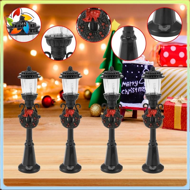 4 Pçs Mini Lâmpada De Natal Post Trem Em Miniatura Rua Luzes Decorativas Para DIY Casa De Bonecas Vila Caminho