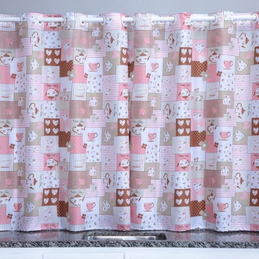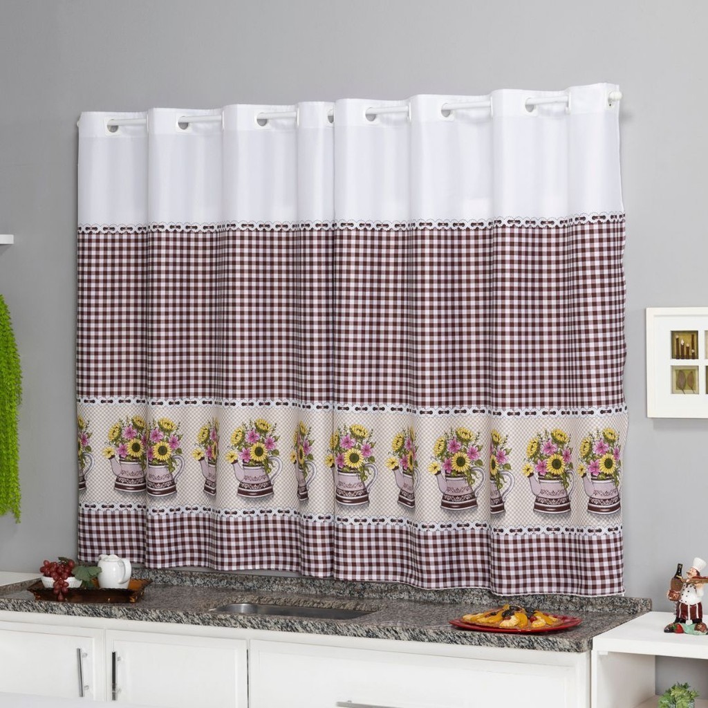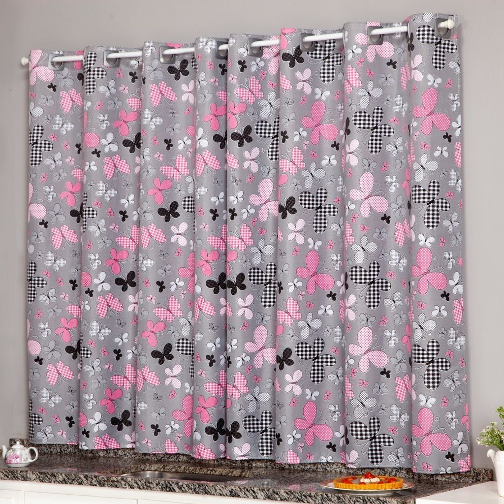 Cortina Oxford Para Cozinha Janela Vitrô 2,00x1,40 Estampada Lisa Com Forro Poliéster Lavável Moderna