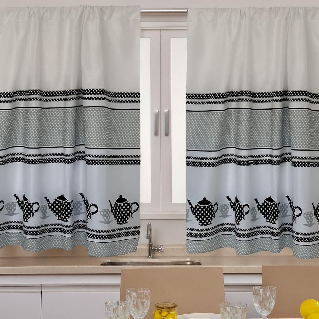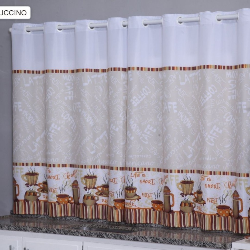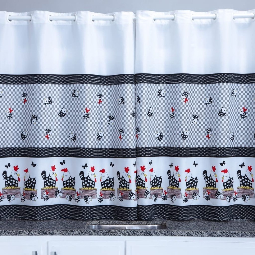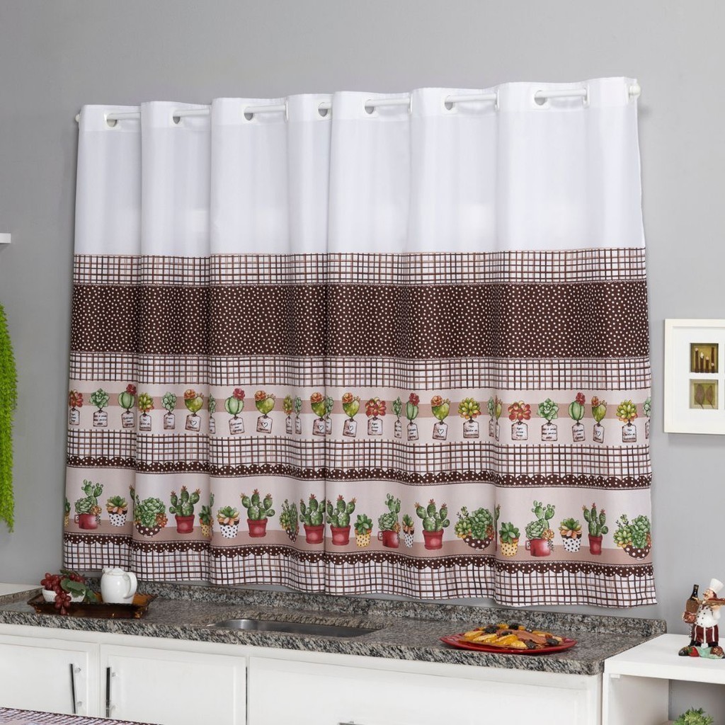 Cortina Oxford Para Cozinha Janela Vitrô 2,00x1,40 Estampada Lisa Com Forro Poliéster Lavável Moderna