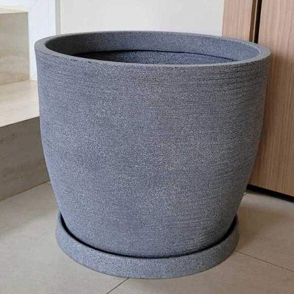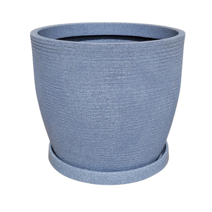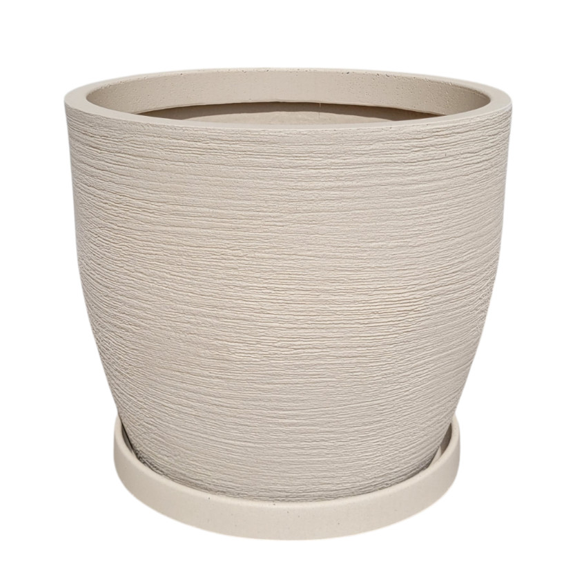 Vaso para Plantas em Plástico Polietileno Tam G com Prato Bojo Redondo Textura Grafiato