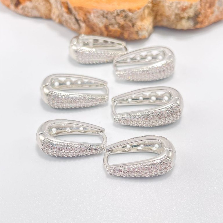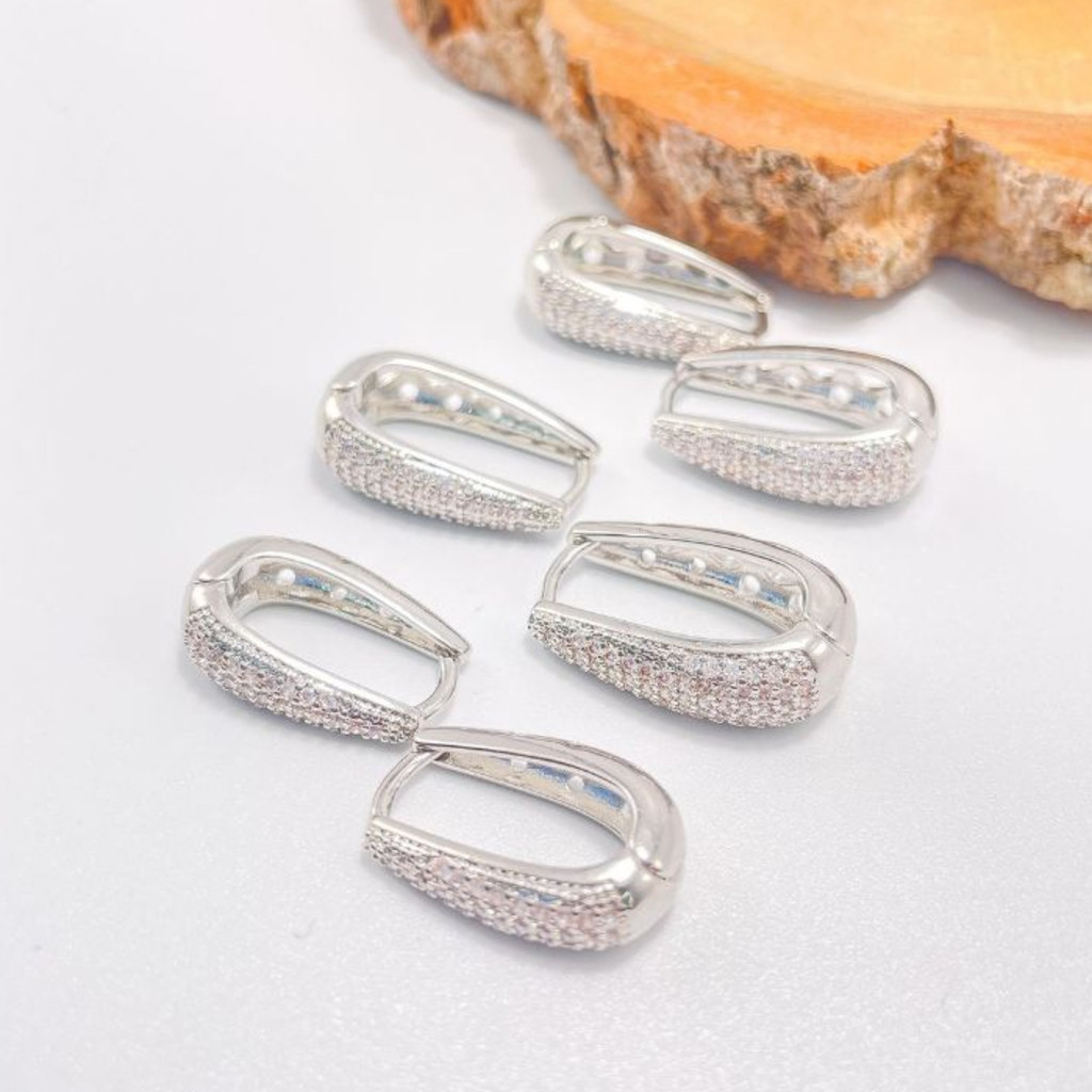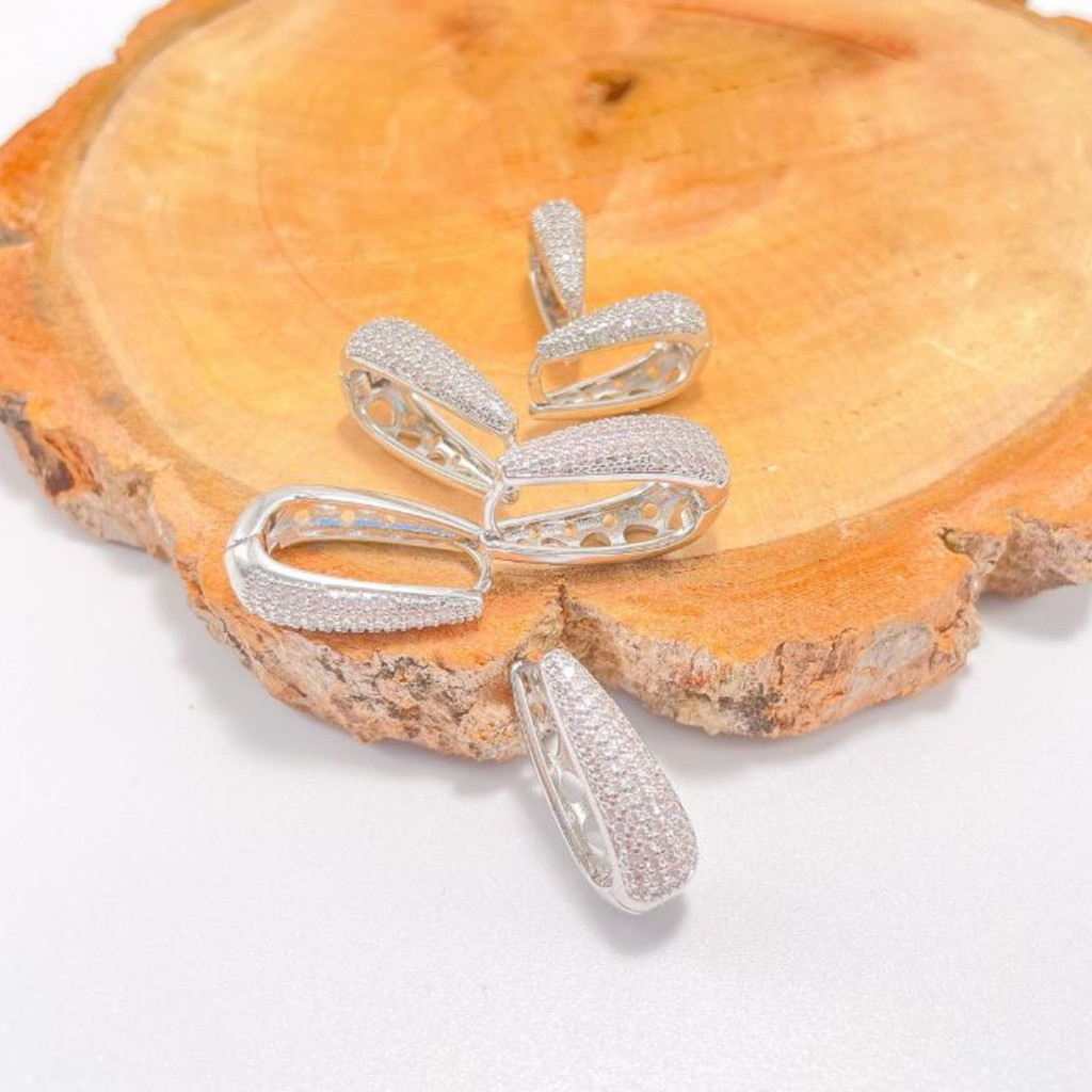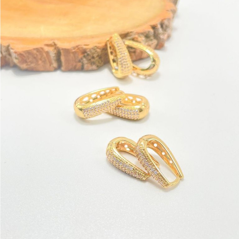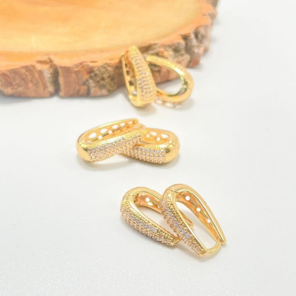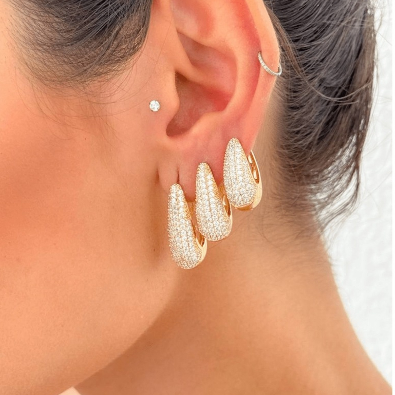 TRIO Luxo 3 Pares de Brincos Cravejada Zircônias Banhada em Ouro 18k e Prata 925.