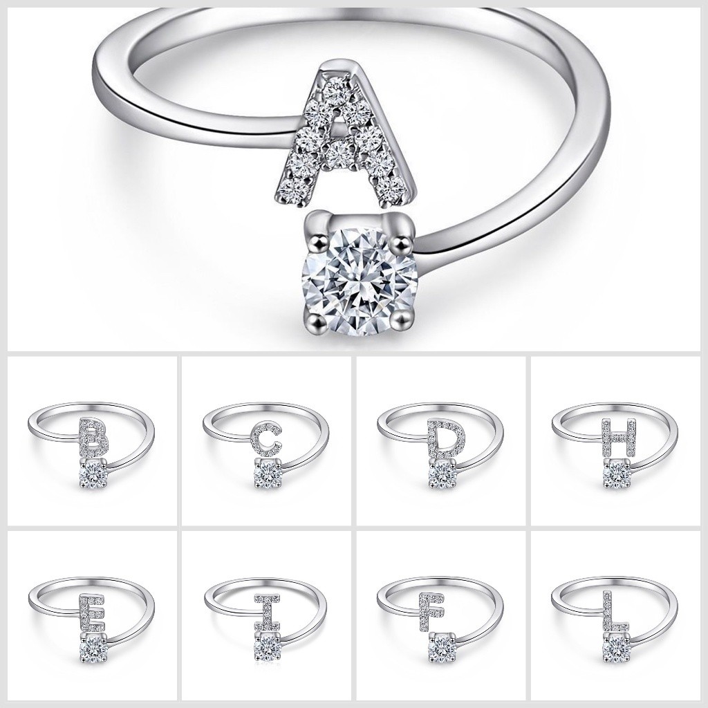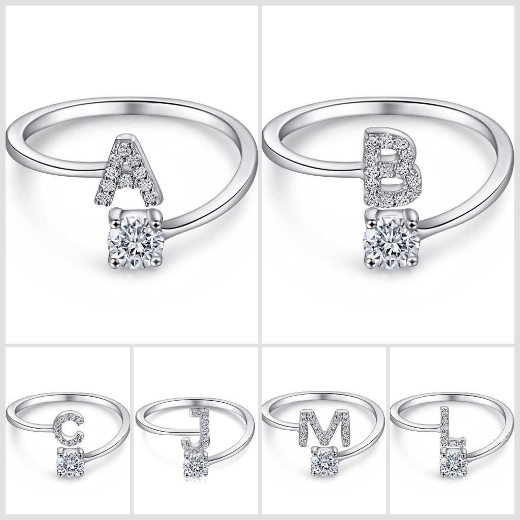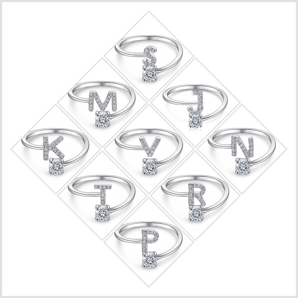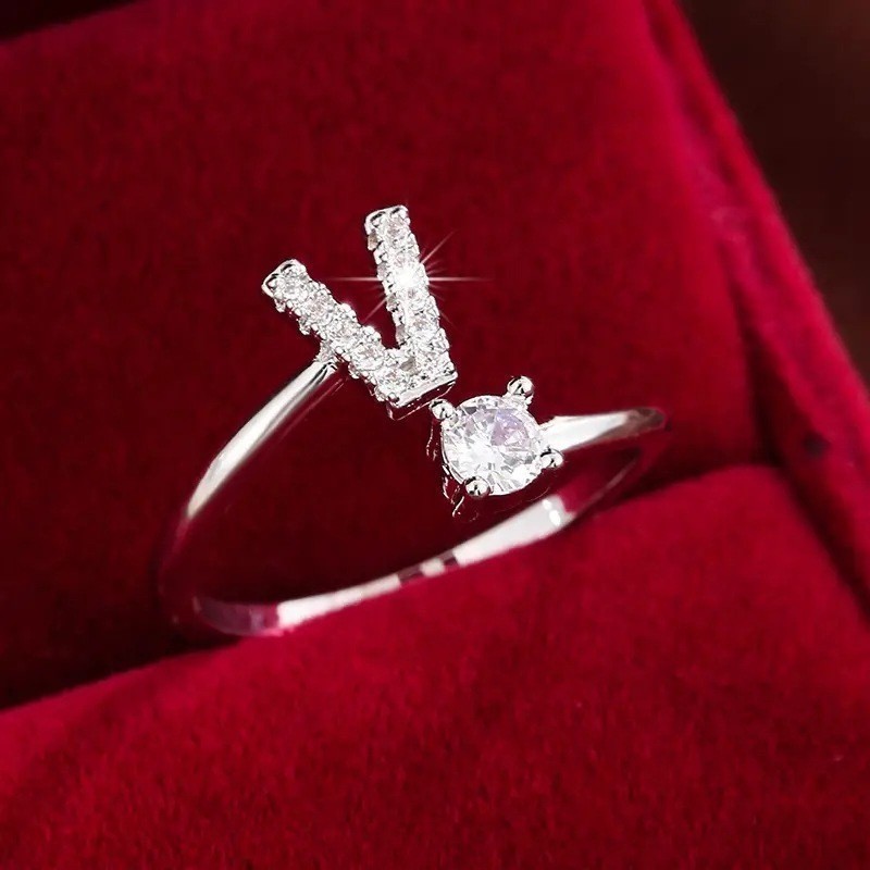 Anel de letra Prata 925 Cravejada Zircônia Feminino Delicado