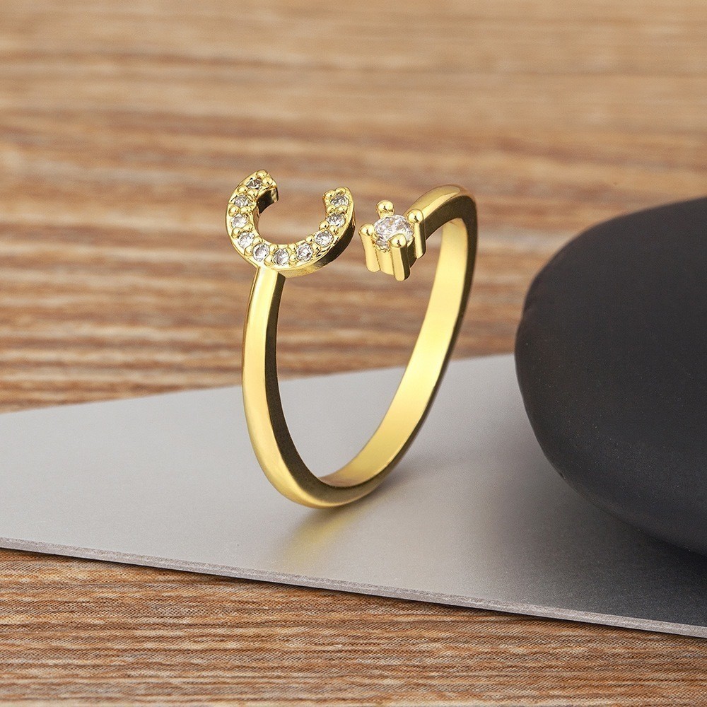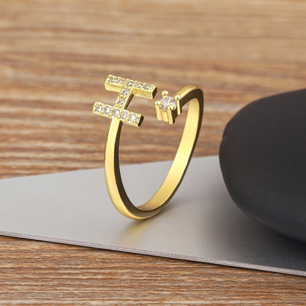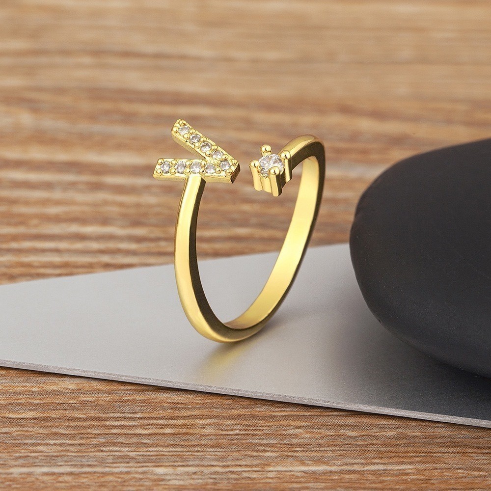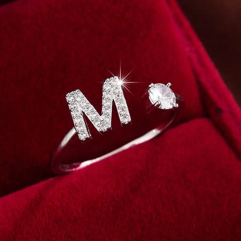 Anel de letra Prata 925 Cravejada Zircônia Feminino Delicado