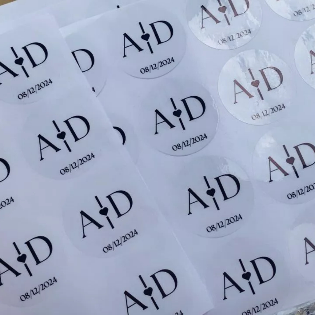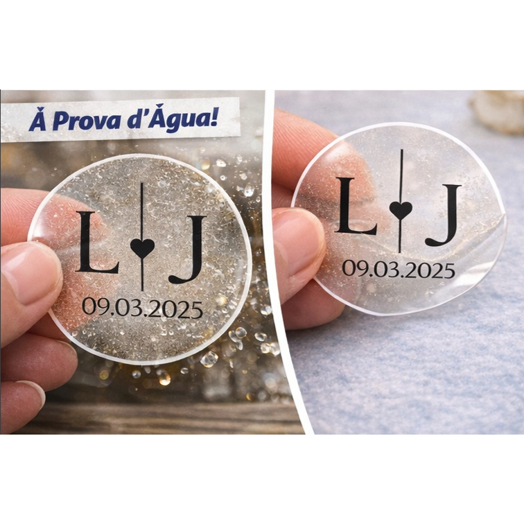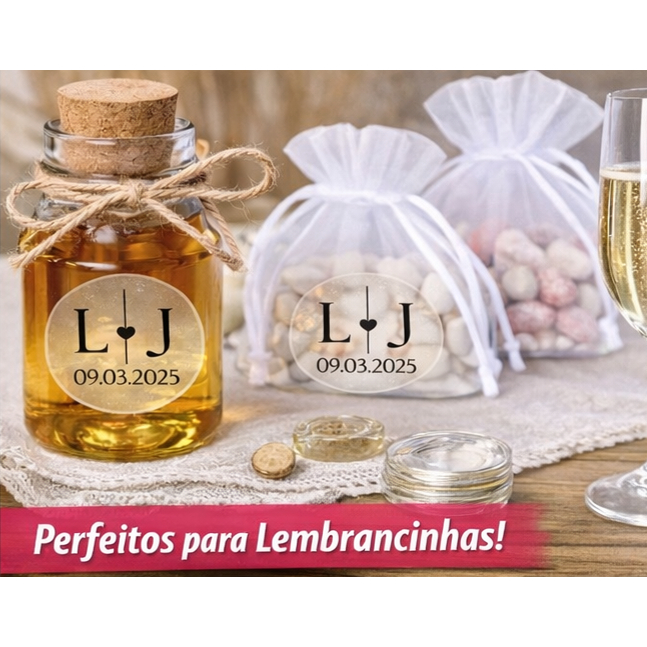 100 Adesivos Transparente Personalizado Casamento | Iniciais Noivos | À Prova D’Água |Lembrança Luxo