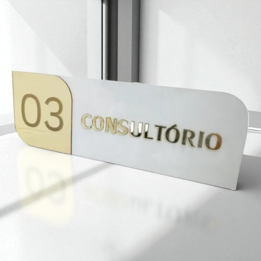 Placa de Porta Personalizada em Acrílico + MDF | Consultório, Banheiro, Sala | Premium