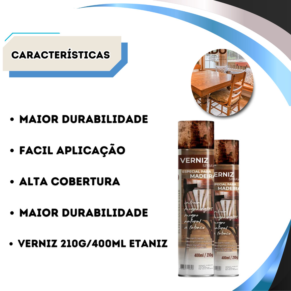 Tinta Verniz Spray Uso Geral 400ml Madeira Secagem Rápida Etaniz