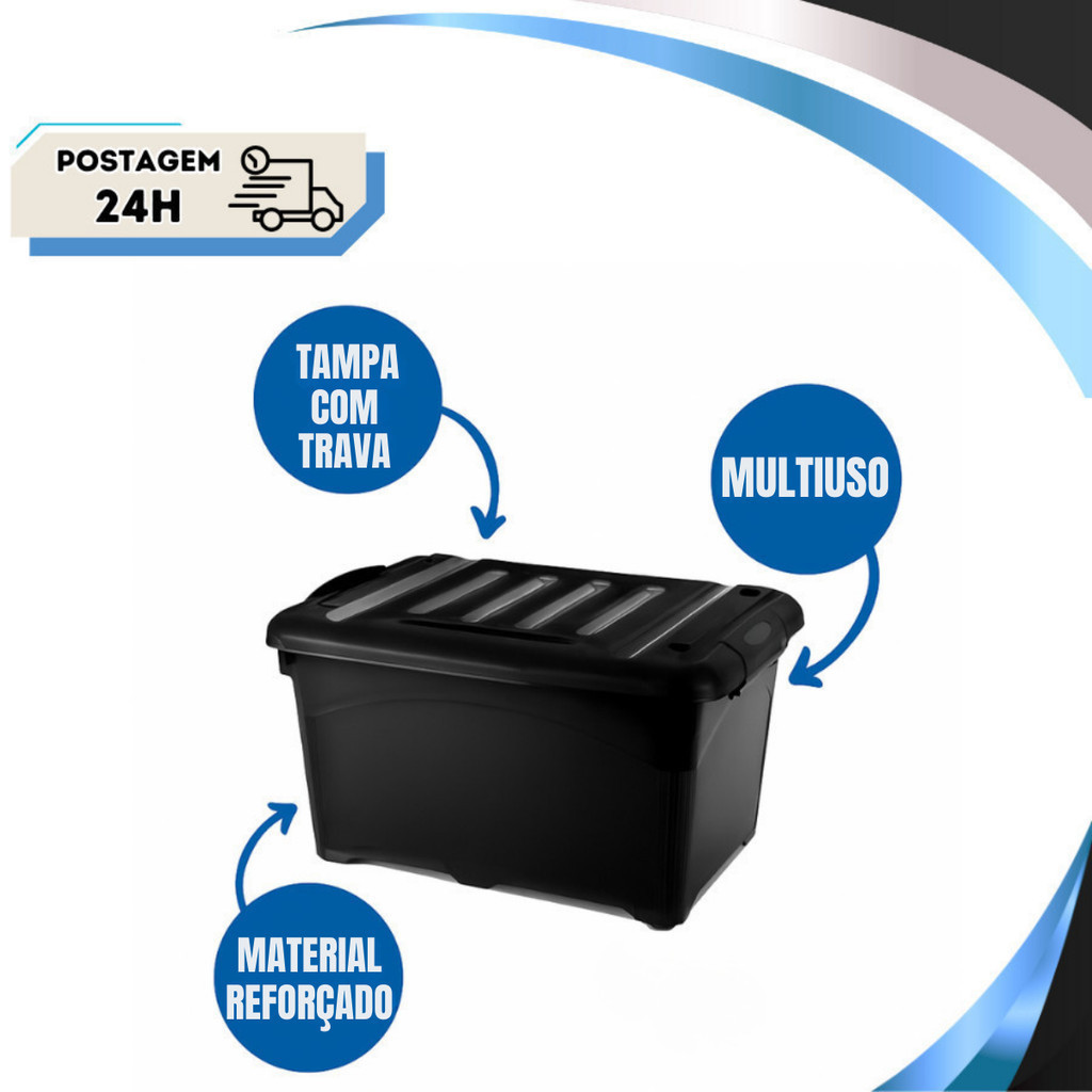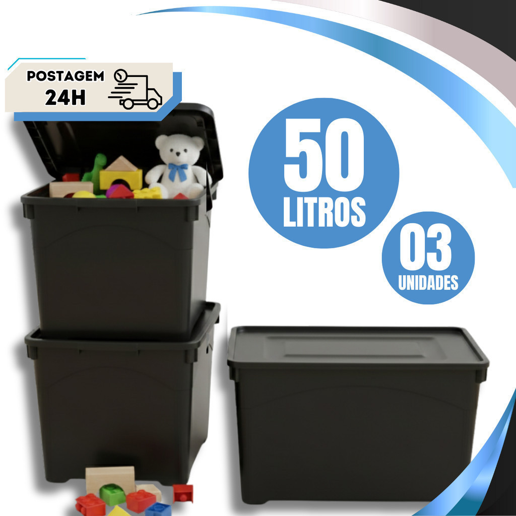Kit 03 Caixa Organizadora Preta 50 Litros Resistente Com Travas