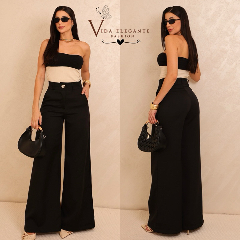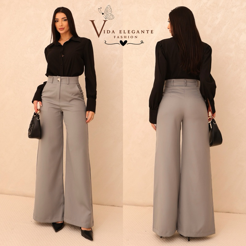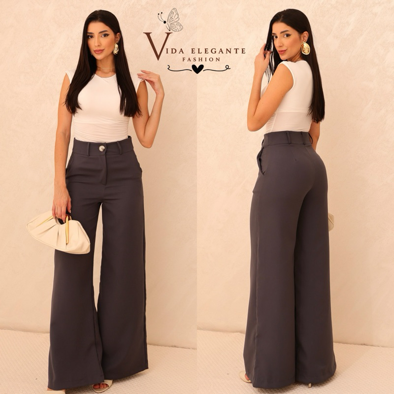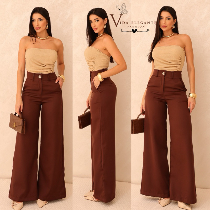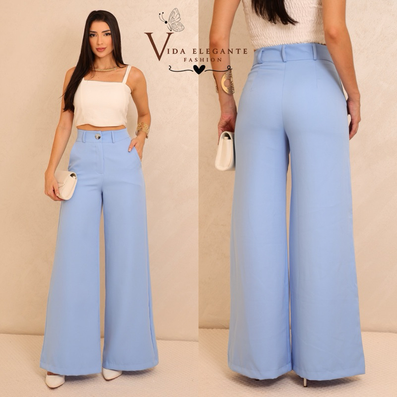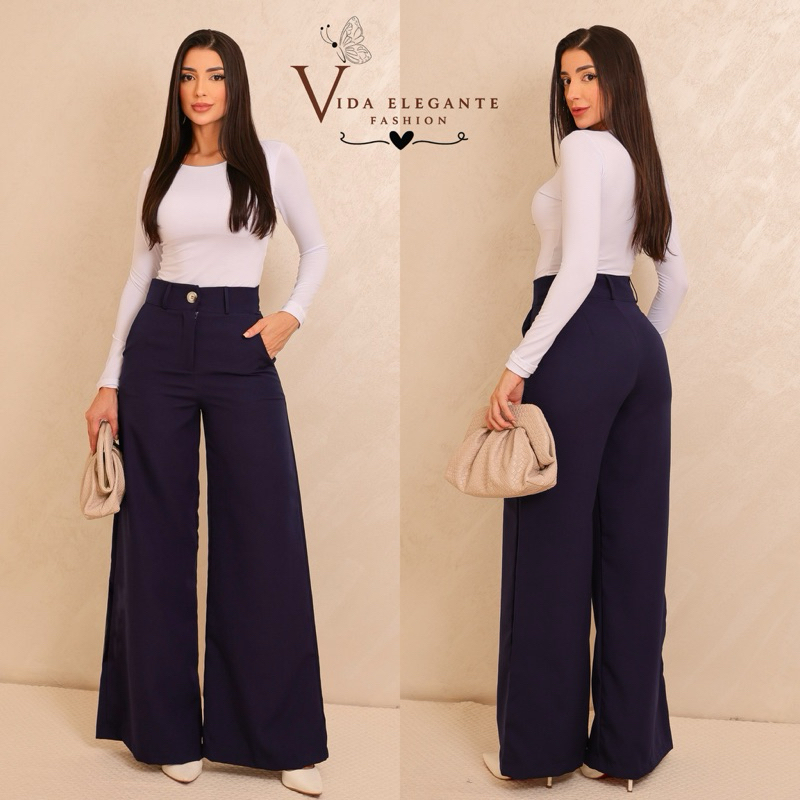 Calça social pantalona alfaiataria premium cintura alta feminina moda elegante lançamento